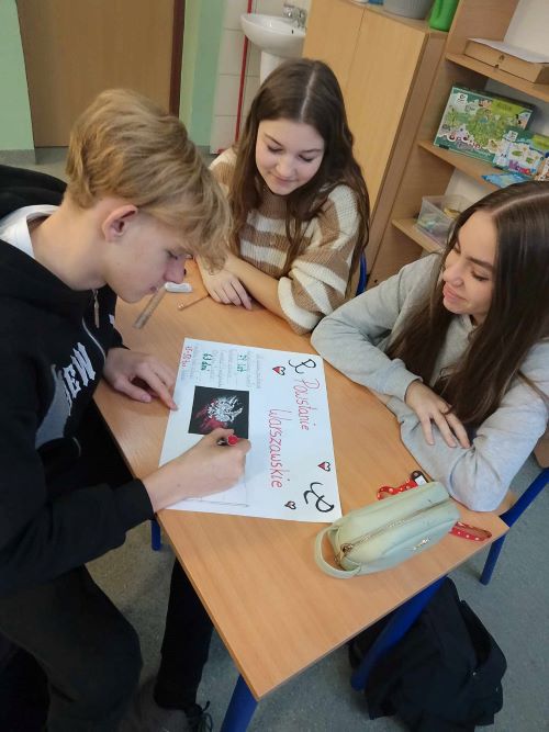 Nauczyciele przeprowadzili szereg lekcji wychowawczych związanych z tym wydarzeniem historycznym, przybliżyli uczniom sylwetki powstańców, a za pomocą strony internetowej BohaterON pokazali filmy, opowiadania multimedialne i spoty. Uczniowie poznali także ważne elementy z naszej historii, takie jak: symbol Polski Walczącej i godzinę „W”. Pamięć o przeszłości jest ważna i uczy młode pokolenie odpowiedzialności i wdzięczności. W młodszych klasach uczniowie wykonali także przeróżne prace plastyczne dotyczące powstania. Realizacja projektu BohaterON w naszej szkole została połączona z obchodami Święta Niepodległości oraz Dniem Wszystkich Świętych. Podczas tych uroczystości uczniowie upamiętnili zmarłych, zapalili znicze na ich grobach, a także pod tablicą upamiętniająca ofiary II wojny światowej.