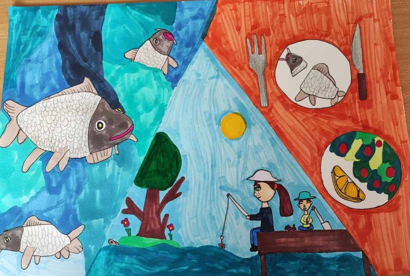Tematem konkursu było przygotowanie pracy plastycznej o tematyce łączącej jedzenie ryb, a w szczególności karpi, z aktywnością sportową i rekreacyjną. Do rywalizacji przystąpiły 42 szkoły, skąd nadeszło 264 prac plastycznych. Prace naszych uczniów znalazły się wśród zwycięzców: w kategorii klasy drugiej: II miejsce zajął - Adam Szewczyk, w kategorii klasy trzeciej i czwartej: również II miejsce zdobyła - Ania Gąbka, a wyróżnienie otrzymał Milan Szewczyk. Za uczestnictwo w konkursie każdy został obdarowany książką pt. „Opowieści Pana Karpia”, a zwycięzcy otrzymali wartościowe nagrody i dyplomy.