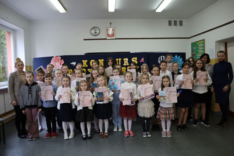 Laureaci etapu szkolnego otrzymali nagrody książkowe, a wszystkim uczestnikom wręczono dyplomy i słodki upominek. Nie zabrakło gratulacji i pamiątkowych zdjęć. W etapie gminnym konkursu naszą szkołę będą reprezentowali zdobywcy I i II miejsca w każdej kategorii wiekowej.