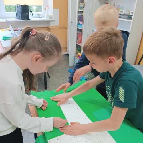 W kwietniu, uczniowie szkolnej świetlicy, zapoznali się z pojęciem „prąd elektryczny". Na zajęciach przypomnieliśmy sobie zasady korzystania z urządzeń podłączonych do sieci. Dowiedzieliśmy się, jak i gdzie powstaje prąd. Porównywaliśmy urządzenia elektryczne używane dawniej i dziś. Po tak dużej dawce wiedzy młodzi pasjonaci zielonej energii zaprojektowali i wykonali makietę farmy wiatrowej.
