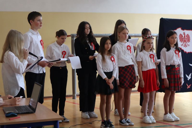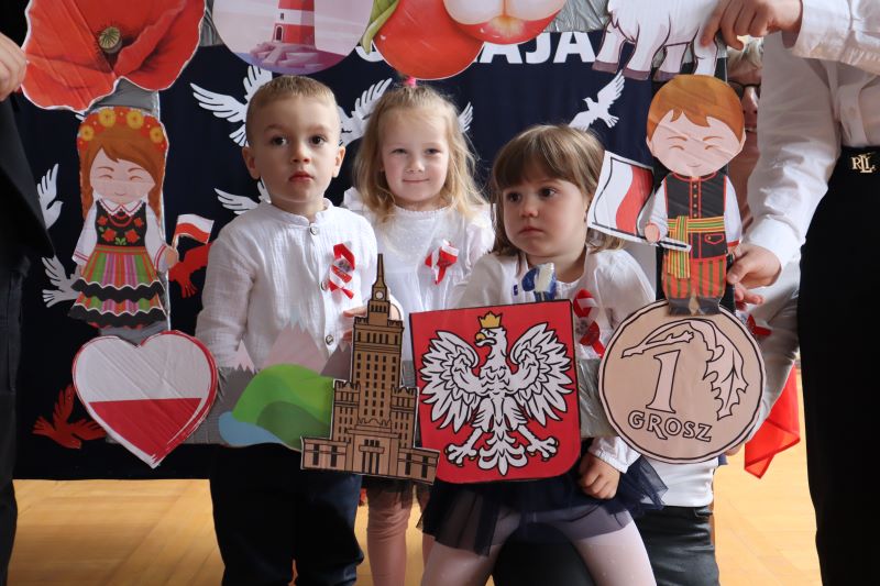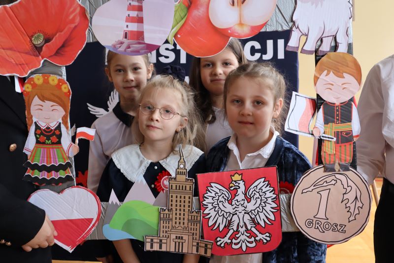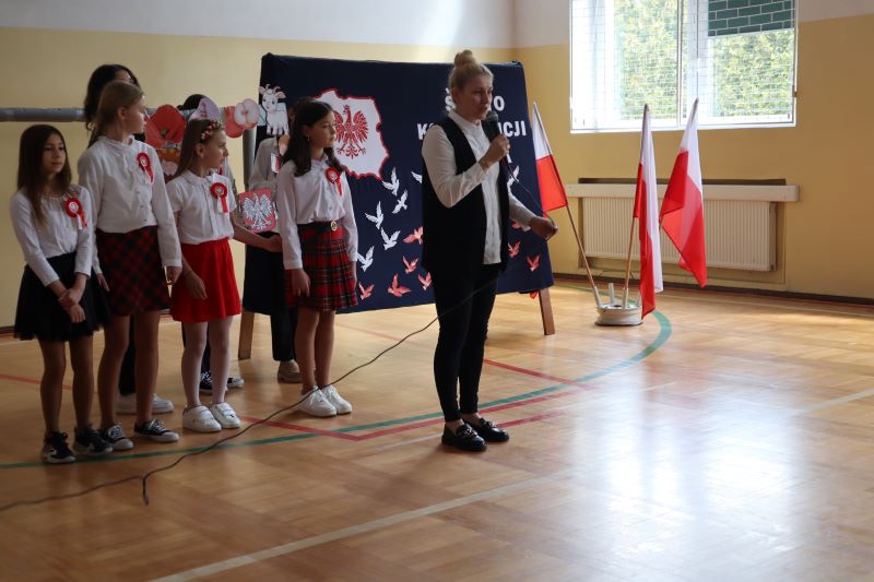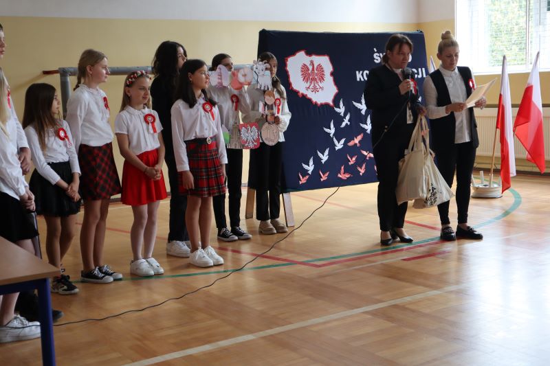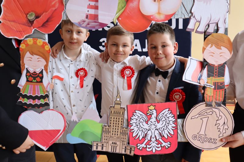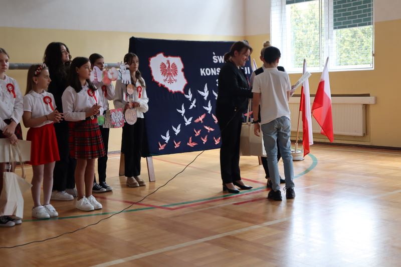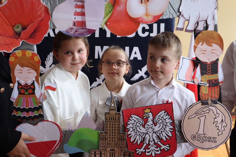 Uczniowie mogli usłyszeć czym jest konstytucja i jaką odgrywa rolę w państwie, a także co oznaczają pojęcia: Bóg, Honor, Ojczyzna. Słowami piosenki uczennice klasy czwartej przypomniały, że był to pierwszy tego typu dokument w Europie, a drugi na świecie. Na koniec Samorząd Uczniowski przygotował fotoramkę i zaprosił przedszkolaków i uczniów do wspólnych zdjęć.