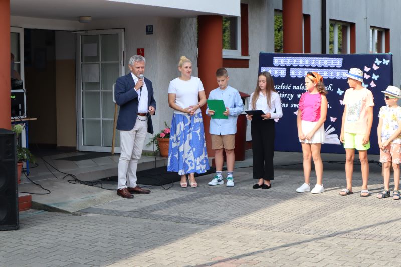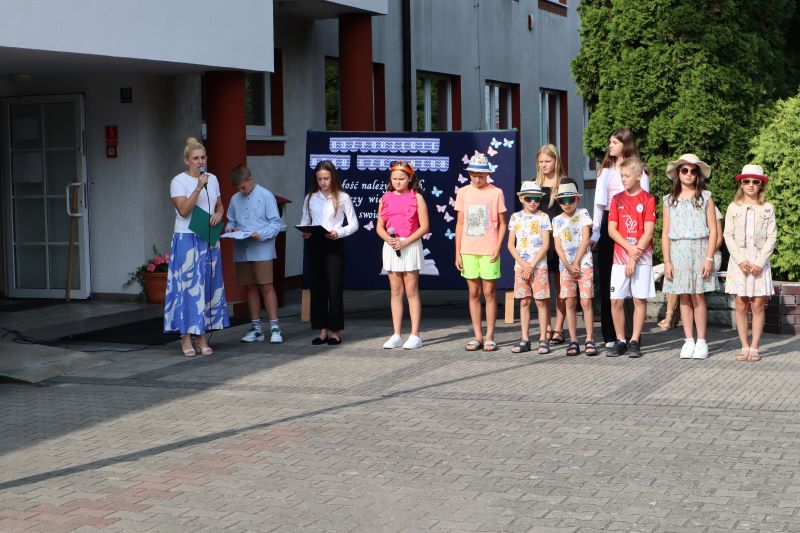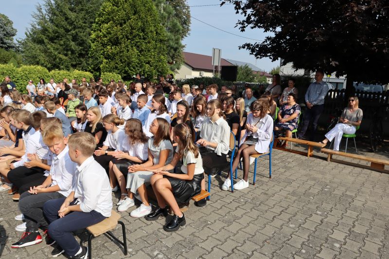 Po wspólnej modlitwie w kościele, uczniowie wraz z nauczycielami udali się do szkoły, gdzie o godzinie 10.00 odbyła się inauguracja nowego roku szkolnego. Uroczystość rozpoczęła się od odśpiewania hymnu państwowego oraz hymnu szkoły. Następnie głos zabrała Pani Dyrektor – Angelika Kałka, która powitała wszystkich uczniów, rodziców, nauczycieli oraz zaproszonych gości. Swoją obecnością zaszczycili nas: Wójt Gminy Sośnie – Adam Harlak, radna powiatu ostrowskiego – Danuta Szwedziak, ksiądz kanonik – Michał Pacyna, sołtys wsi – Jan Rafalski, przedstawiciel Rady Sołeckiej – Jan Dulik, radni – Andrzej Mus i Robert Zydorczak, przedstawicielka KGW – Karolina Bartsch, zarząd Rady Rodziców – Barbara Przybyłek i Magdalena Kuświk. Uczniowie zaprezentowali część artystyczną związaną z pożegnaniem wakacji i powrotem do szkoły. Nawiązali również do 85 rocznicy wybuchu II wojny światowej. Na zakończenie wójt Adam Harlak i radna powiatu Danuta Szwedziak życzyli wszystkim uczniom satysfakcji z nauki i sukcesów w nowym roku szkolnym.