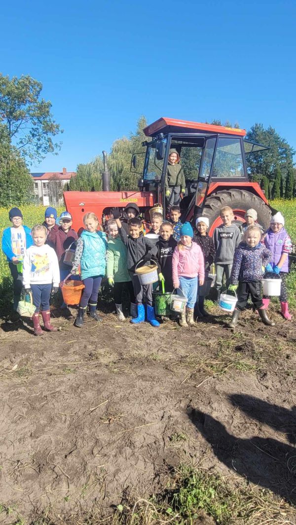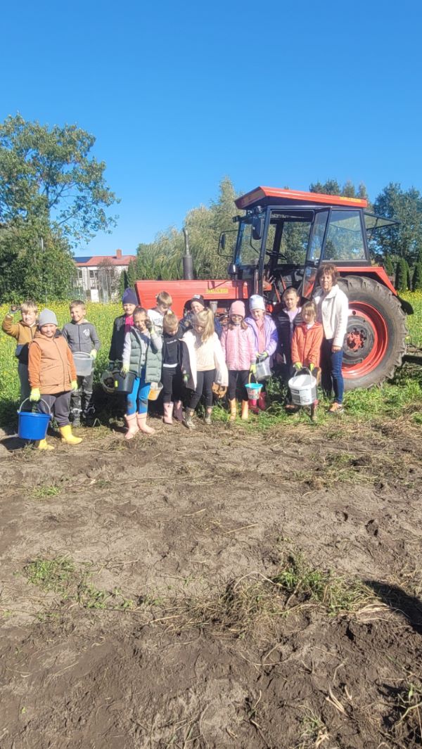 Jedną z jesiennych atrakcji w naszym przedszkolu oraz w klasach I-III były wykopki. Dzieci i uczniowie miały okazję zobaczyć, jak wykopuje się ziemniaki, ale największą atrakcją było ich zbieranie oraz wspólne zabawy w polu.