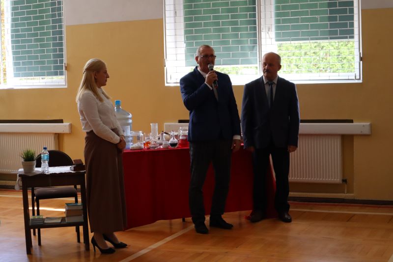W części oficjalnej głos zabrała Pani Dyrektor – Angelika Kałka, która powitała wszystkich zebranych i złożyła serdeczne życzenia wszystkim pracownikom szkoły. Uroczystość Dnia Edukacji Narodowej zaszczycili swoją obecnością goście: sołtys - Jan Rafalski, radny Gminy Sośnie – Andrzej Mus, ksiądz kanonik – Michał Pacyna, zarząd Rady Rodziców: Barbara Przybyłek, Magdalena Kuświk, Paweł Dryjański.