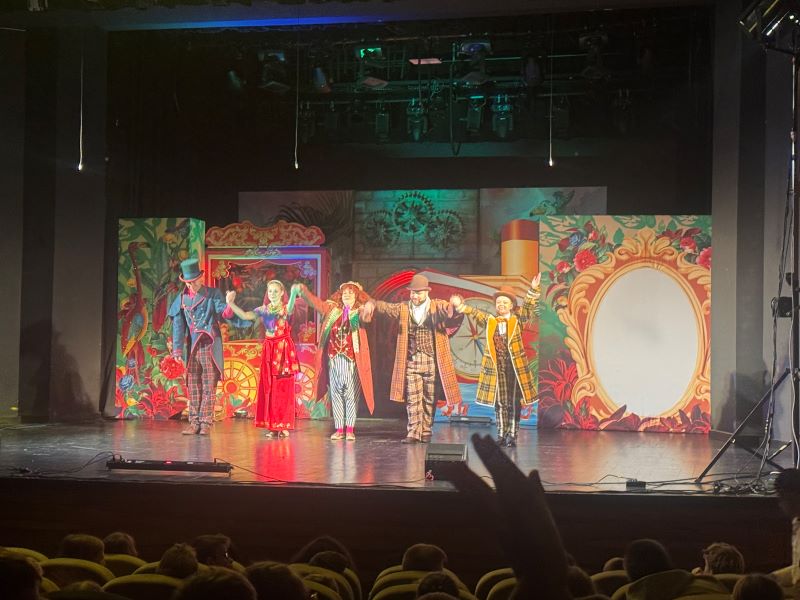 Podróż dookoła świata? Czemu nie…. Pewien dżentelmen z Londynu, postanowił założyć się z kolegami, że przemierzy świat w 80 dni. W podróż udał się pociągiem, statkiem parowym, a także na grzbiecie słonia. W dowcipnej adaptacji powieści udział wzięło pięciu aktorów, którzy wspaniałą grą, śpiewem, a także oryginalnymi strojami zachwycili szkolną publiczność, za co zostali nagrodzeni gromkimi brawami.