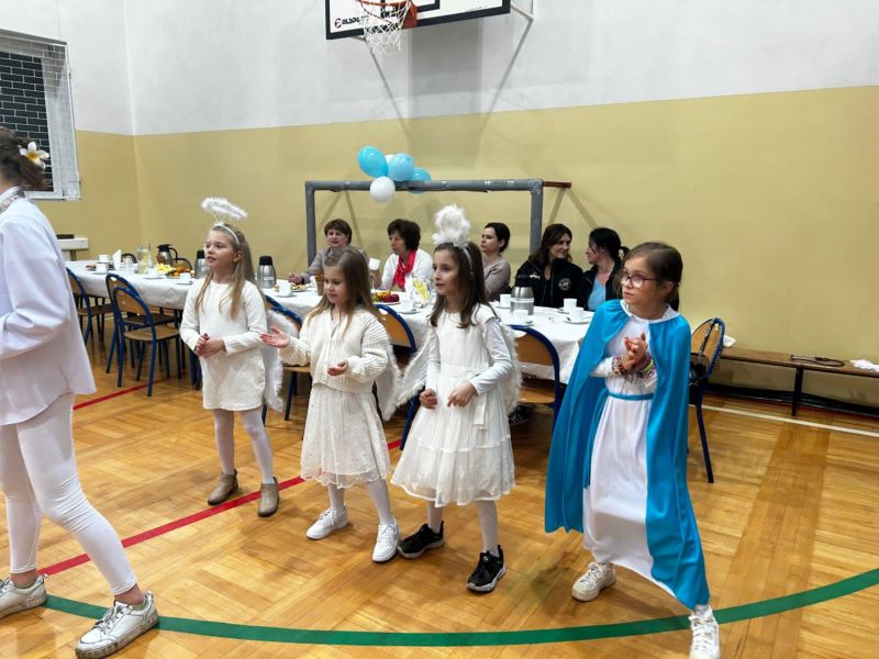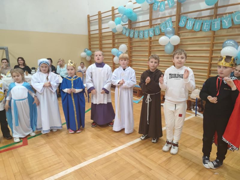 Dzieci pojawiły się w strojach nawiązujących do postaci świętych. Najpierw odbyła się modlitwa różańcowa w Kościele parafialnym, a potem cały orszak przemaszerował do szkoły, gdzie odbyła się dalsza część Balu. Były tańce i słodki poczęstunek. Dziękujemy Oratorium św. Dominika Savio w Twardogórze za animacje.