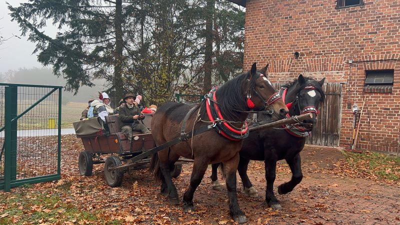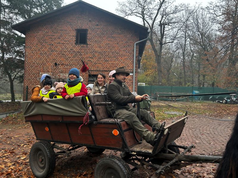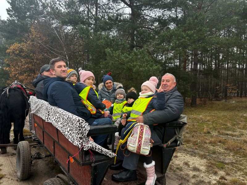 13 listopada br. nasze przedszkolaki wraz rodzicami, dziadkami uczestniczyli w wycieczcie autokarowej do leśniczówki w Młyniku. Dzięki uprzejmości Państwa Maciak – rodziców Michalinki, wszystkie dzieci, a także rodzice mieli okazję przejechać się bryczką zaprzężoną konikami.