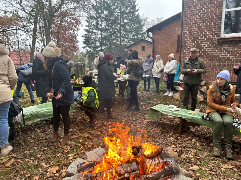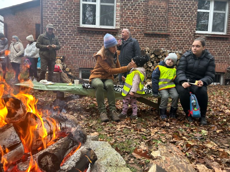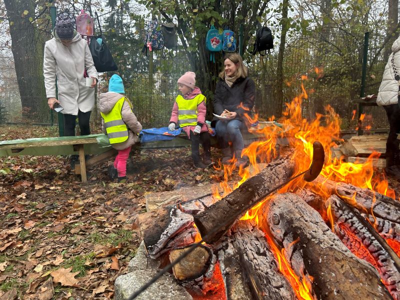 Pobyt w leśniczówce zakończył się tradycyjnym ogniskiem i pieczeniem kiełbasek. Na rodziców czekała gorąca kawa i ciasto drożdżowe upieczone przez naszą Panią Agnieszkę. Przedszkolaki z niezapomnianymi wrażeniami wróciły do placówki.