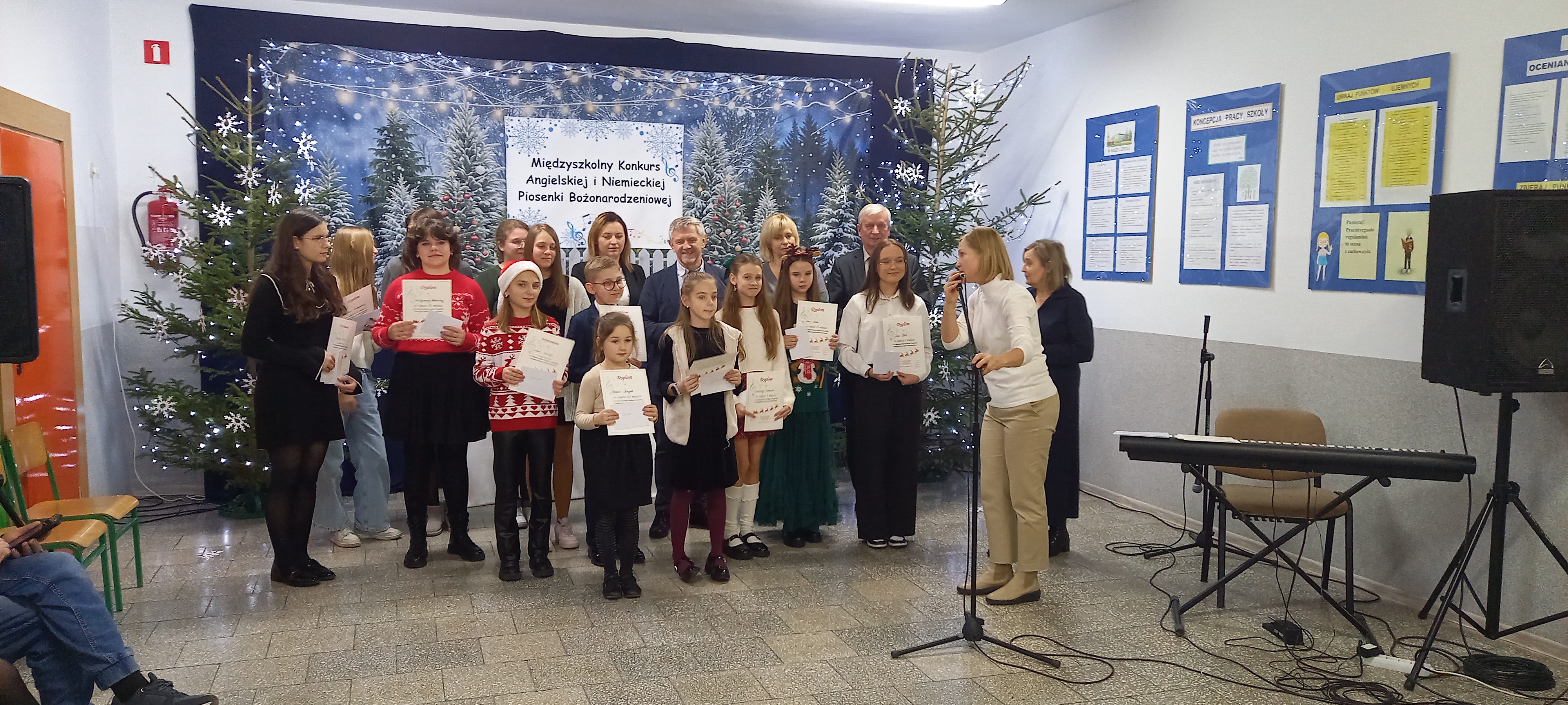 W kategorii klas III – IV reprezentował nas Adam Szewczyk z kl. III z piosenką „ Jingle bells”. W kategorii klas V – VI były to: Nikola Szewczyk z kl. V i Alina Rapalska z kl. VI, zaś w najstarszej kategorii wiekowej: Aleksandra Biegańska z kl. VII i Daria Rudowicz z kl. VIII. Do konkursu przystąpili uczniowie ze szkół podstawowych z gmin: Sośnie i Odolanów. W sumie zaprezentowano 32 utwory, które wprowadziły wszystkich w świąteczny nastrój. Poziom konkursu był bardzo wysoki, a występy uczniów ciekawe ze względu na wartość artystyczną. W każdej kategorii wiekowej przyznano po trzy miejsca. W najstarszej kategorii Daria Rudowicz z piosenką „I’ll be home” zajęła III miejsce, zaś w kategorii klas V - VI Nikola Szewczyk otrzymała wyróżnienie za wykonanie piosenki „So this is Christmas”. Gratulujemy i życzymy dalszych sukcesów!