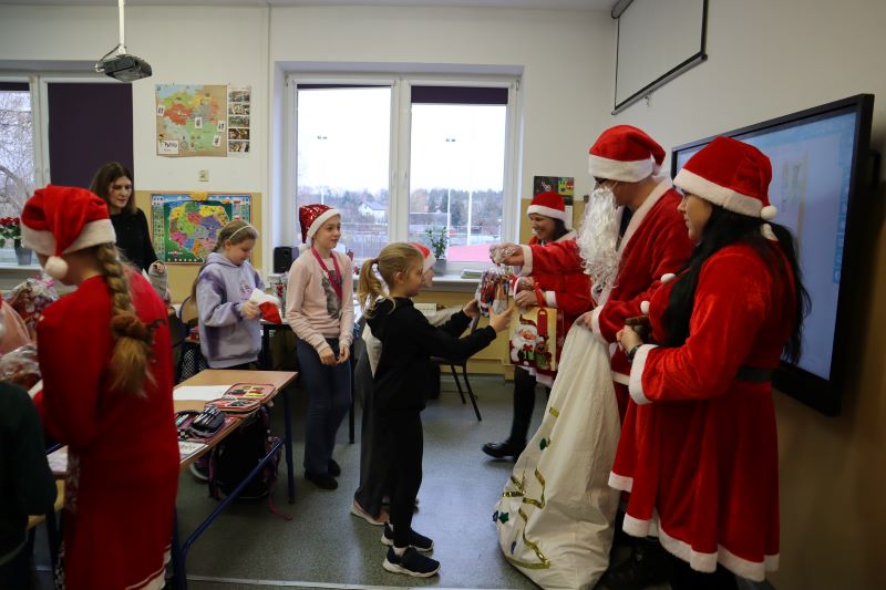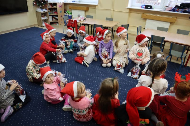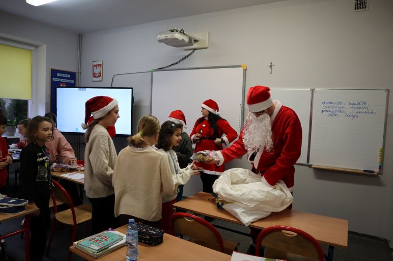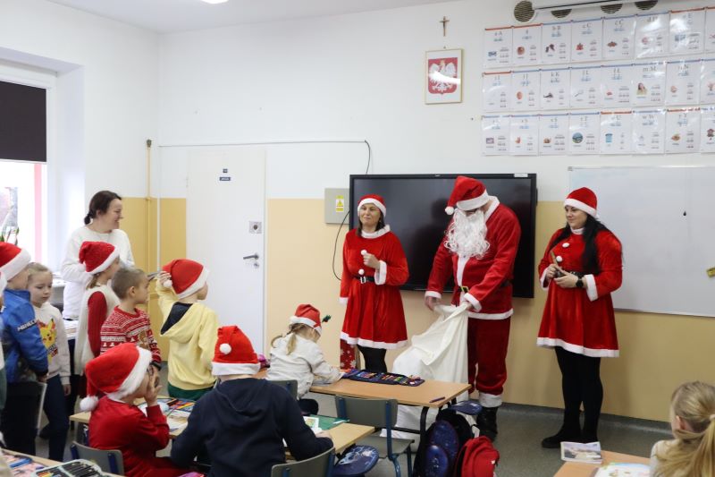Święty Mikołaj odwiedził przedszkolaków, a potem każdą klasę. Dzieci zachwycone wizytą wspaniałego gościa śpiewały piosenki i recytowały wiersze. Po krótkiej rozmowie, nadeszła długo oczekiwana chwila – rozdawanie prezentów. Uśmiechy na twarzach uczniów były bezcenne, a atmosfera pełna magii i świątecznego ducha. To był niezapomniany dzień, który na długo pozostanie w pamięci wszystkich uczniów i nauczycieli. Dziękujemy Świętemu Mikołajowi za wizytę i już nie możemy doczekać się kolejnych świątecznych niespodzianek!