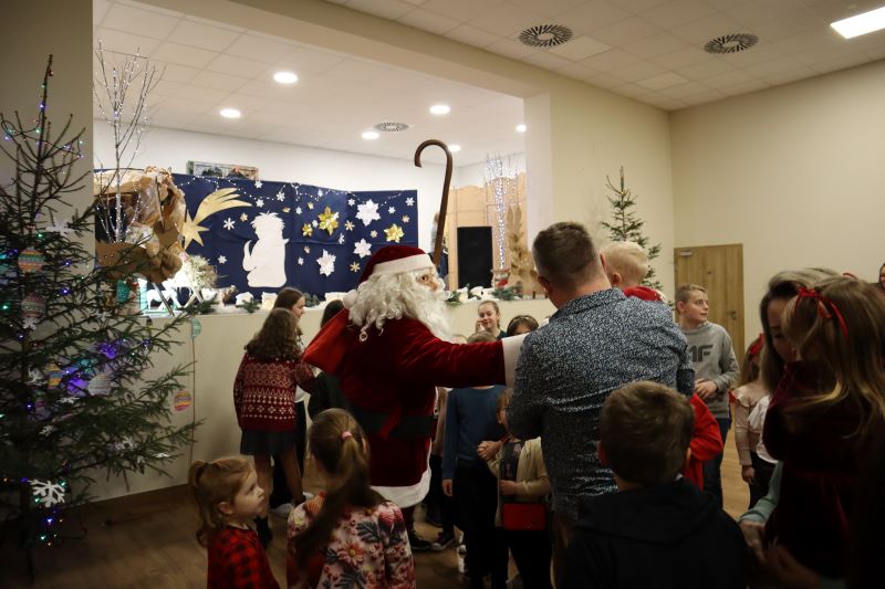 Otóż uczniowie Zespołu Szkół w Granowcu przygotowali przedstawienie jasełkowe, podczas którego starali się ukazać, że w święta najważniejsze jest to, aby miłość zagościła w każdym progu i aby ludzie znowu myśleli o Bogu. Ten świąteczny czas umilili nam również swoimi układami tanecznymi przedszkolaczki oraz uczniowie należący do grupy tanecznej „Jaskier”. Ponadto odbył się kiermasz ozdób bożonarodzeniowych, który cieszył się sporą popularnością. A na koniec pojawił się wyczekiwany gość – Święty Mikołaj, który obdarował wszystkie dzieci cukierkami. Występy młodych aktorów, układy taneczne, śpiew pięknych kolęd i pastorałek oraz pełna symboliki dekoracja pozwoliły poczuć istotę wydarzeń w Betlejem.