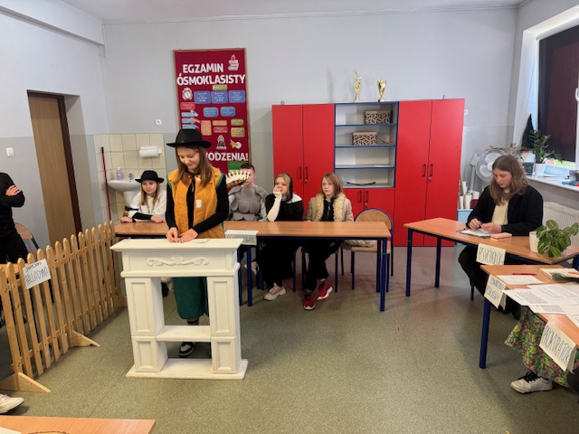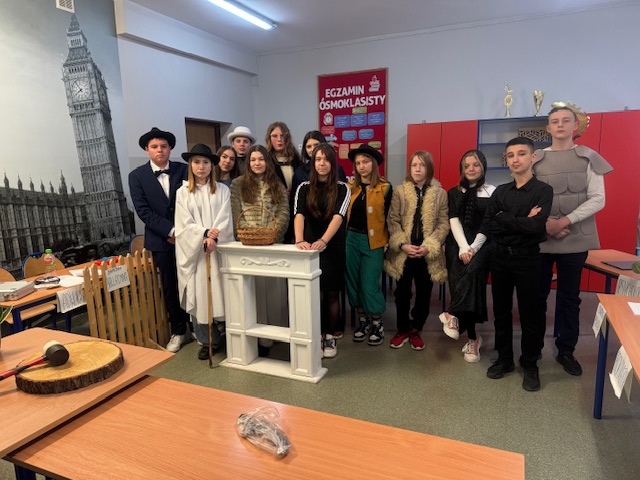 19 lutego klasa VIII wraz z panią Anetą Wieją przygotowała nietypową lekcję z języka polskiego. Uczniowie w ramach omawiania lektury Juliusza Słowackiego pt.: „Balladyna” postanowi wystawić krótki spektakl, prezentujący rozprawę sądową nad tytułową Balladyną.