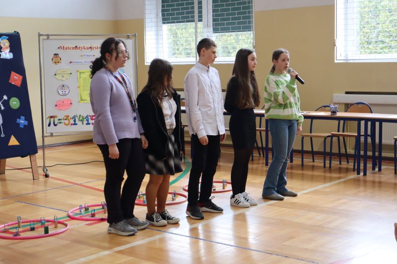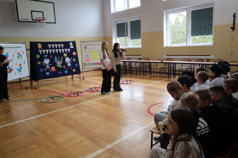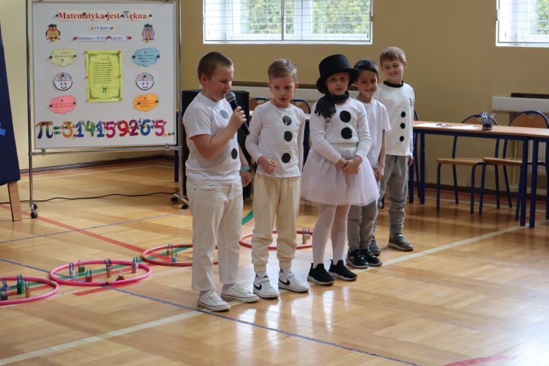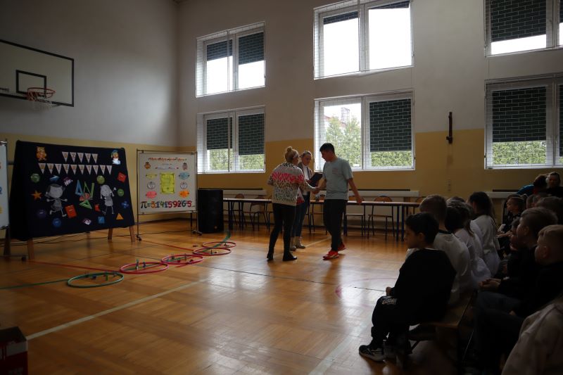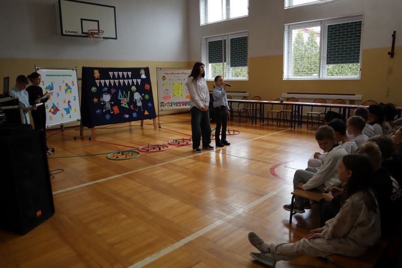 Tegoroczny Międzynarodowy Dzień Matematyki w naszej szkole obchodziliśmy 14 marca, kiedy to swoje święto miała także Liczba Pi. Z tej okazji cała społeczność szkolna spotkała się w specjalnie przygotowanej sali gimnastycznej. Spotkanie rozpoczęło się od części artystycznej, w której każda klasa zaprezentowała krótki występ o tematyce matematycznej: piosenki, wiersze, układy taneczne. Druga część szkolnego święta miała charakter konkursu. Uczniowie klas IV – VIII rywalizowali ze sobą z zakresu wiedzy matematycznej, logicznego myślenia i sprawności manualnych. Wszyscy doskonale poradzili sobie z zadaniami, co sprawiło, że na ich twarzach pojawiał się uśmiech i satysfakcja z dobrze wykonanej pracy. Udział w zabawach matematycznych pokazał, że ta niezwykła dziedzina nauki, to nie tylko liczby, wzory i trudne zadania, ale również znakomita przygoda i mnóstwo zabawy. Do zobaczenia za rok!