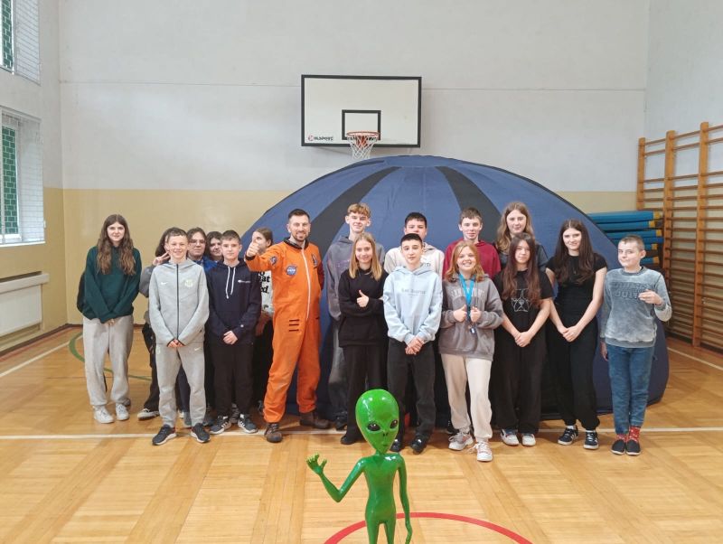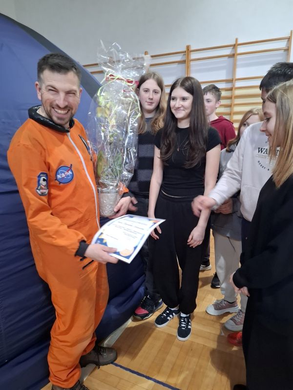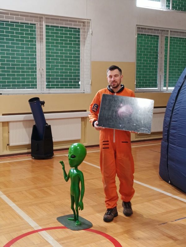 Pracując w Astro Arenie prowadzi działania mające na celu popularyzację astronomii i nauk ścisłych. Chętnie dzieli się swoją pasją i zaraża nią nie tylko dzieci ale i dorosłych. W naszej szkole przeprowadził warsztaty w Mobilnym Planetarium Astro Arena, łącząc edukację z kosmiczną zabawą. Celem zajęć była nie tylko edukacja astronomiczna ale przede wszystkim inspiracja do rozwijania własnych zainteresowań. Przybliżył dzieciom gwiazdy i gwiazdozbiory, z niebywałą pasją zaprezentował też swoje hobby, jakim są obserwacje nieba. Uczniowie mieli okazję dotknąć prawdziwego meteorytu. W najbliższym czasie, przy sprzyjających warunkach pogodowych przeprowadzi z uczniami wieczorne obserwacje nieba za pomocą profesjonalnego sprzętu. Już dziś wszystkich chętnych uczniów serdecznie zapraszamy!