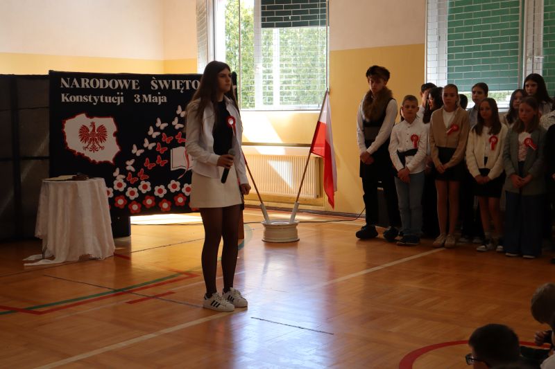 W poniedziałek, 28 kwietnia 2025 roku w naszej szkole odbyła się uroczysta akademia poświęcona rocznicy uchwalenia Konstytucji 3 Maja.