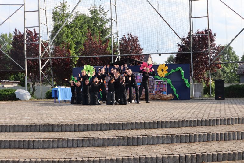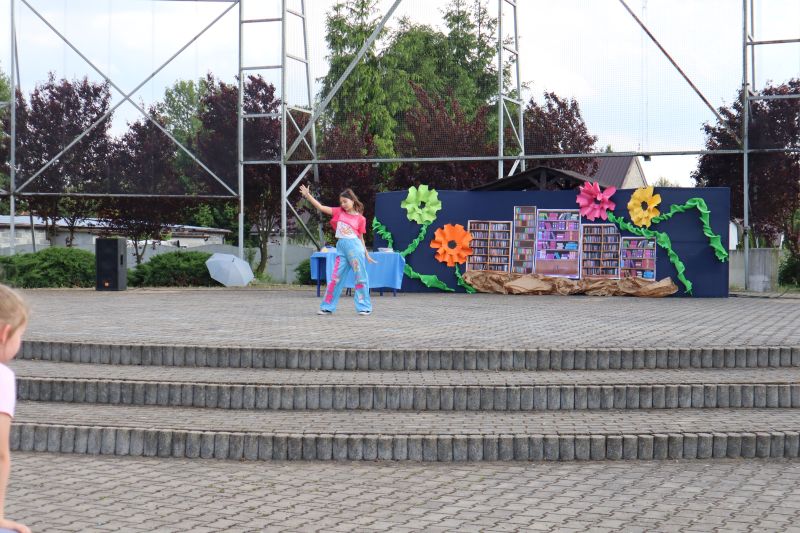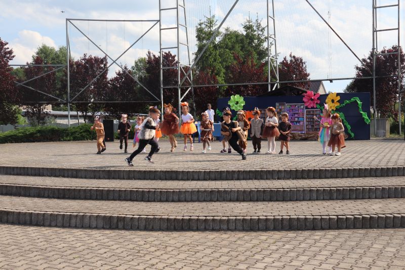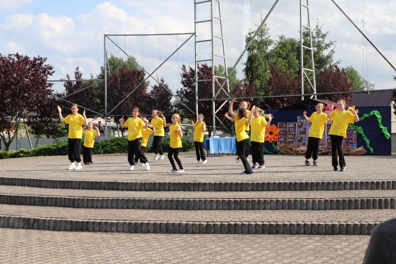 W programie festynu rodzinnego nie zabrakło występów najmłodszych przedszkolaków. Maluszki swoim tańcem „Dzik jest dziki” zapisały się w pamięci niektórych na pewno na długo, a choreografia pokazowa starszych kolegów do piosenki „Cudownych rodziców mam” wzruszyła zgromadzonych do łez. Nie zabrakło również występów dzieci i młodzieży z poszczególnych grup wiekowych, którzy zaprezentowali na scenie swoje umiejętności taneczne przygotowane przez szkołę taneczną „Jaskier”. Na scenie mogliśmy gościć również młodzież ze Studia Tańca „System”. Natomiast w ramach koła teatralnego klasa VI wystawiła inscenizację pt. „Przygoda w bibliotece”, która uzmysłowiła widzom potrzebę czytania literatury. Atrakcją dla najmłodszych były dmuchane zamki, wata cukrowa, a także „Piana Party”. Miłą niespodzianką dla mam były upominki, które zostały im wręczone z okazji obchodzonego niedawno Dnia Matki oraz przygotowany dla wszystkich poczęstunek.