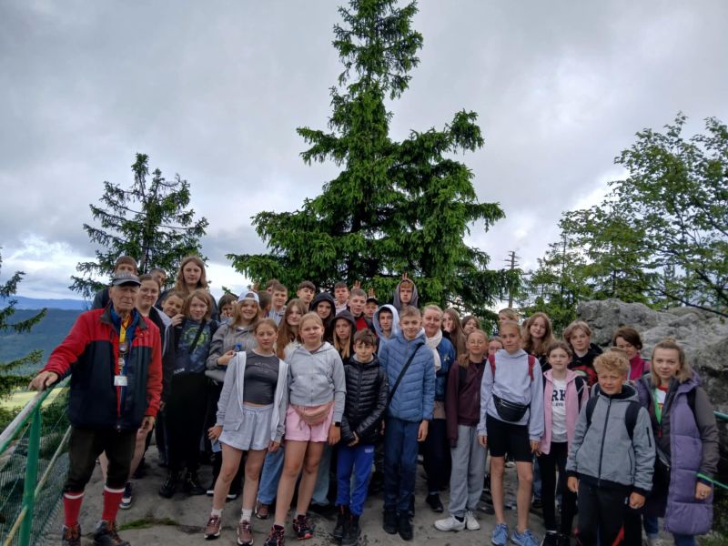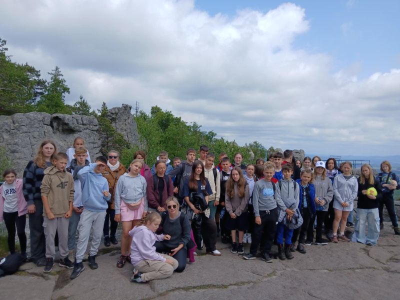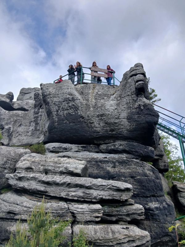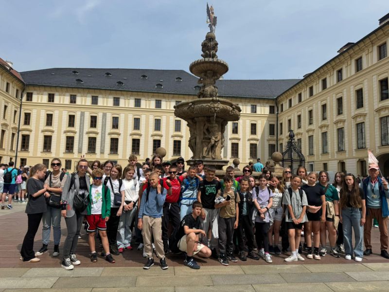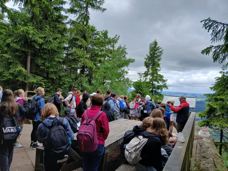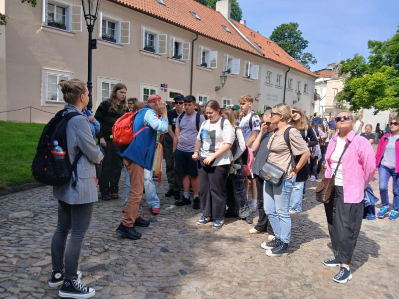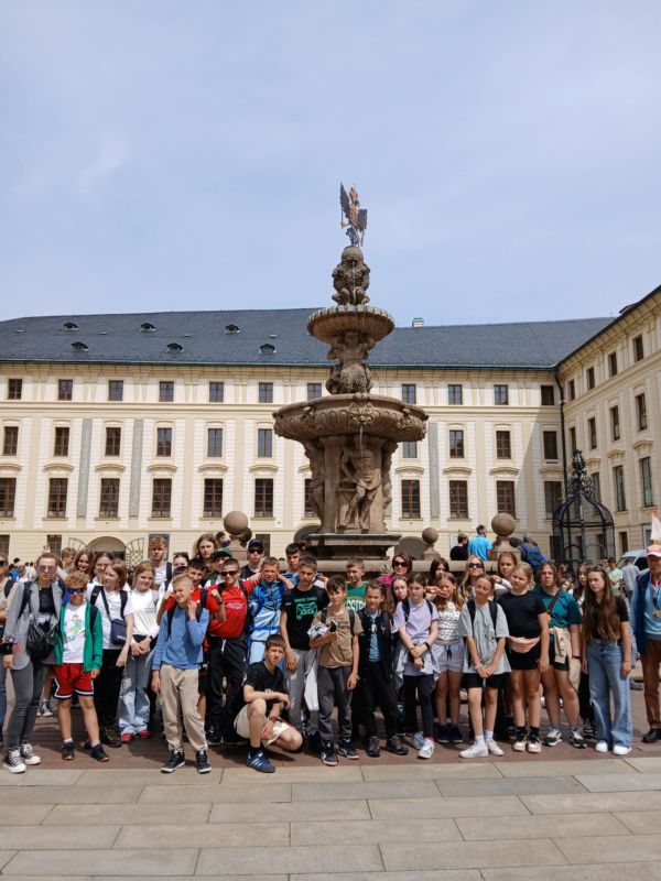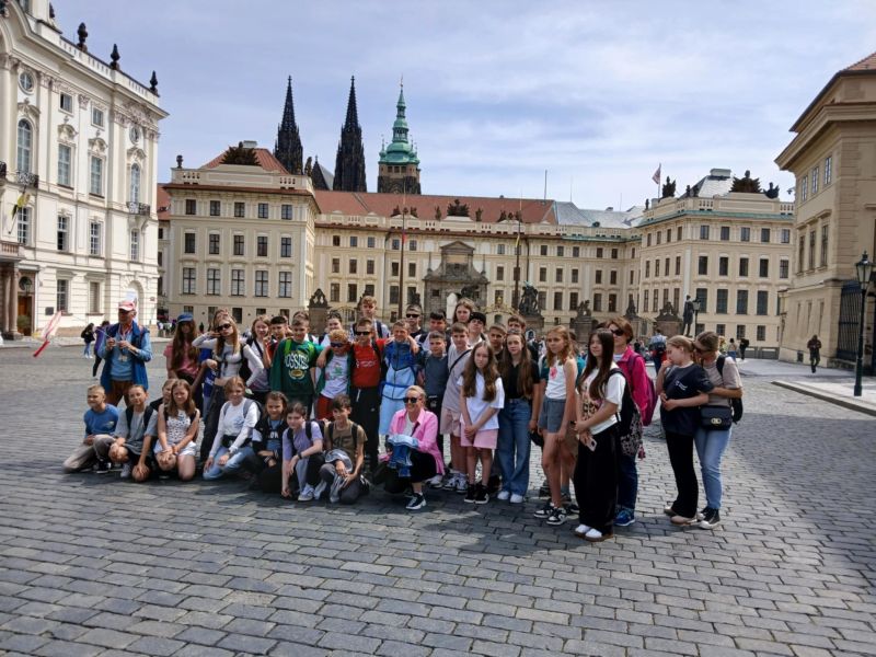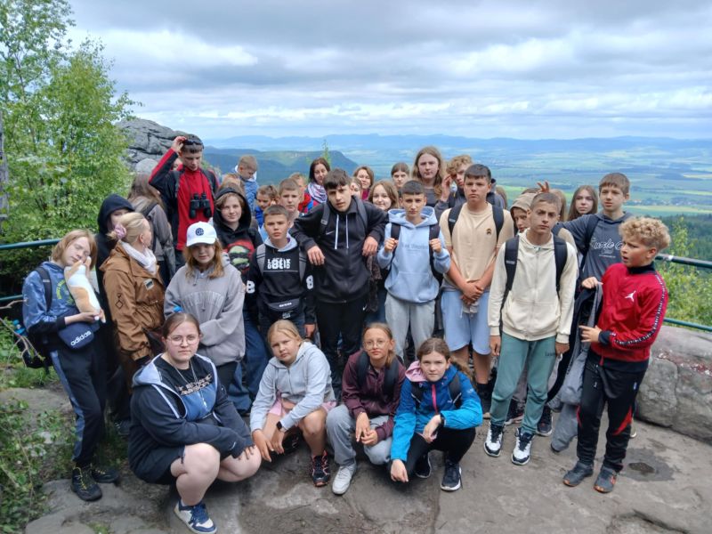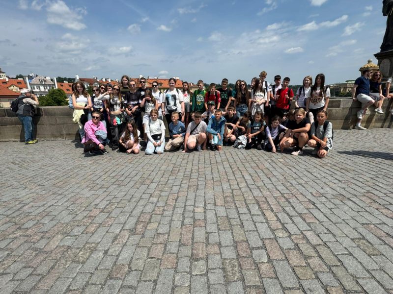 Po południu odwiedzili Polanicę Zdrój. Spacerowali po Parku Zdrojowym oraz deptaku, a następnie udali się na miejsce noclegowe w Kudowie Zdroju. Drugi dzień był bardzo intensywny, a rozpoczął się bardzo wczesnym śniadaniem. Po posiłku uczniowie udali się do stolicy Republiki Czeskiej - Pragi. Miasto przywitało młodzież piękną, słoneczną pogodą oraz mnóstwem ciekawych miejsc do zobaczenia. Nasz przewodnik przybliżył nam tradycje oraz historię tego cudownego miasta oraz pokazał takie znane miejsca jak: Most Karola, Katedrę Świętego Wita, Rynek Starego Miasta czy Praski Zegar Astronomiczny. Po intensywnym zwiedzaniu, uczniowie spróbowali czeskiej kuchni. Zmęczeni, ale zadowoleni wrócili do Kudowy. Ostatni dzień pozwolił na kontakt z naturą oraz podziwianie piękna górskich krajobrazów, ponieważ wspinaliśmy się w tym dniu na Błędne Skały oraz Szczeliniec Wielki. Wszystkim dopisywał dobry humor. Pomimo zmęczenia, w dobrych nastrojach, szczęśliwie wróciliśmy do domu.