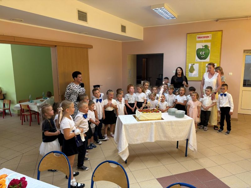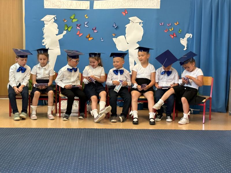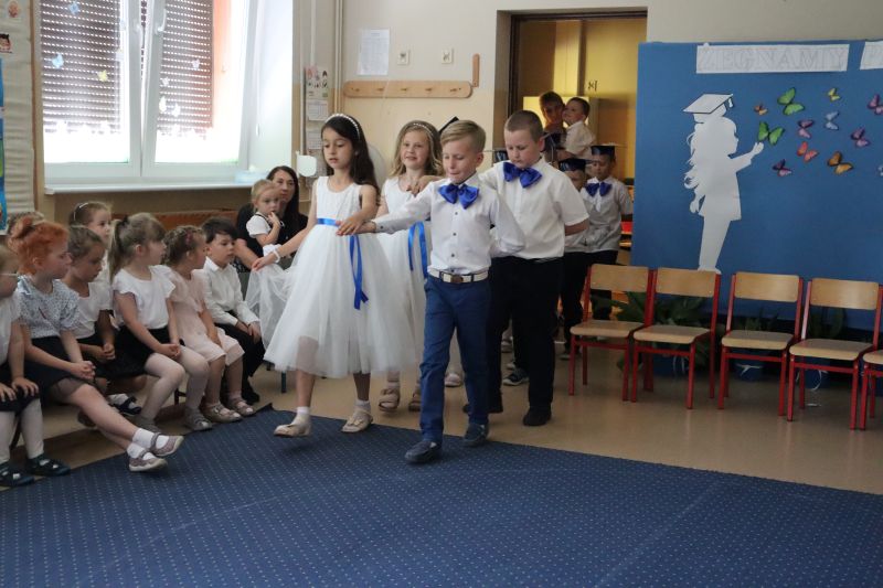 Dzieci zaprezentowały program artystyczny, na który składał się taniec -polonez, wiersze i piosenki, przygotowane specjalnie na tę okazję. Wzruszeni rodzice i nauczyciele nie kryli łez, oglądając występy swoich małych artystów. Dzieci z grupy „ Rybek” również sprawiły niespodziankę starszym kolegom, recytując krótkie wierszyki. Pani Dyrektor oraz wychowawczyni wręczyły pamiątkowe dyplomy i drobne upominki, dziękując za wspólnie spędzony czas i życząc im sukcesów w szkole Na uroczystość przybyli również przedstawiciele Rady Rodziców Przedszkola , którzy także obdarowali wszystkie przedszkolaki drobnymi upominkami. Uroczystość zakończyła się wspólną sesją zdjęciową i słodkim poczęstunkiem. Wszystkim absolwentom życzymy powodzenia na nowej drodze obowiązków szkolnych!