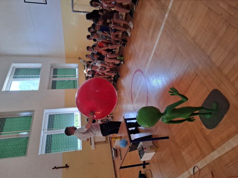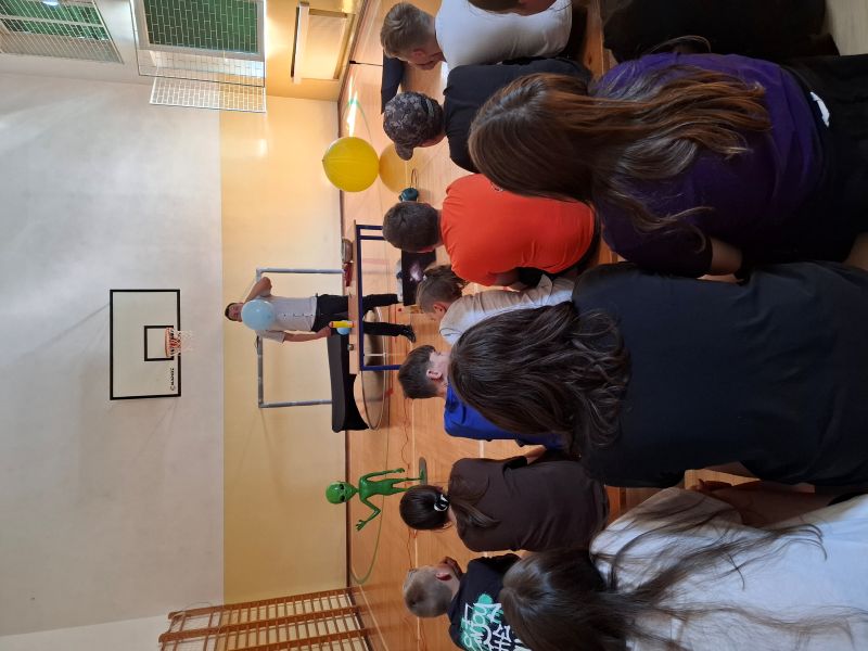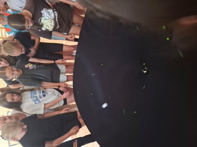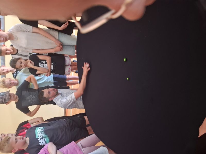 Tym razem były to dzienne obserwacje plam na Słońcu za pomocą profesjonalnego teleskopu. Z ogromna pasją i w bardzo przystępny dla uczniów sposób, Pan Daniel przybliżył trudną wiedzę astronomiczną. Opowiedział o powstawaniu gwiazd, wyjaśnił czym jest grawitacja i jak powstaje czarna dziura, co zobrazował w bardzo sugestywny sposób. Dziękujemy Panu Danielowi i z niecierpliwością czekamy na kolejne spotkanie.