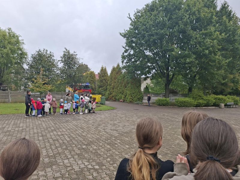 Po sygnale dźwiękowym uczniowie wraz z nauczycielami oraz pracownikami szkoły opuścili budynek szkoły i udali się na miejsce zbiórki w parku rekreacyjno- sportowym. Nauczyciele na podstawie dziennika przekazali pani dyrektor, prowadzącej akcję ewakuacyjną, informacje dotyczące stanu liczebności klas. Okazało się, że na miejscu brakowało pani Anety Wiei, którą udało się strażakom odszukać i bezpiecznie doprowadzić na miejsce zbiórki. Takie alarmy próbne to bardzo ważna sprawa, która ma za zadanie przygotować nas do odpowiedniego postępowania podczas prawdziwej ewakuacji na wypadek pożaru lub innego zagrożenia.