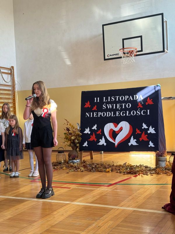 Miała ona na celu przypomnieć najważniejsze fakty z historii Polski oraz skłonić wszystkich obecnych do refleksji, czym jest dzisiaj niepodległość. Występujący uczniowie ukazali, jak trudna była droga Polski do wolności, a pozostali podkreślili wagę Święta Niepodległości swym ubiorem oraz biało-czerwonymi kotylionami. Cała społeczność odśpiewała hymn Polski i szkoły. Na zakończenie uroczystości można było posłuchać piosenek patriotycznych w wykonaniu najmłodszych. Był to wyjątkowy dzień ze względu na uroczystą atmosferę, która towarzyszyła kolejnej rocznicy odzyskania niepodległości przez Polskę.