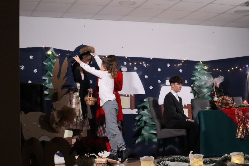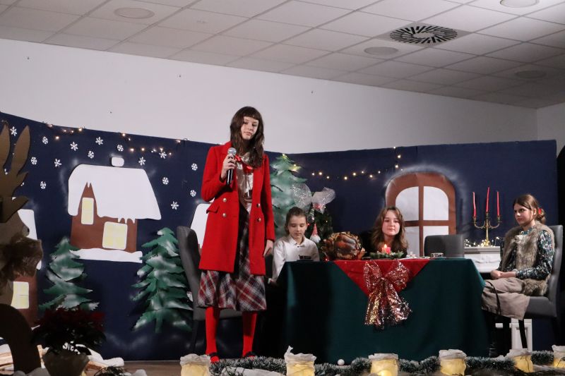 Pierwszą część programu stanowiły występy artystyczne dzieci i młodzieży - układy taneczne, świąteczne piosenki.Wystawiono również przedstawienie pt. „Dziewczynka z zapałkami”. Występujący wykazali się talentem, zaangażowaniem i odwagą, a publiczność nagradzała ich gromkimi brawami. Przygotowano również kiermasz ozdób świątecznych, wykonanych przez uczniów oraz ich rodziców. Nie zabrakło także poczęstunku, który umilał wspólne spędzanie czasu. Nie zabrakło Mikołaja, na którego dzieci czekały z ogromną radością. Wydarzenie przebiegło w ciepłej, rodzinnej atmosferze i wprowadziło wszystkich w nastrój nadchodzących Świąt Bożego Narodzenia.