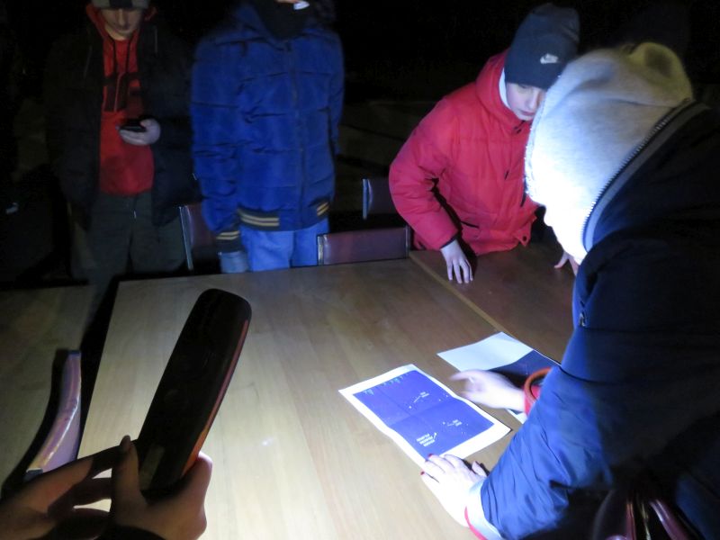 By gołym okiem dojrzeć wybrane konstelacje gwiazd, konieczne jest bezchmurne niebo oraz przyzwyczajenie oczu do ciemności. Po kilku minutach adaptacji oka, uczniowie odnaleźli gwiazdozbiór Oriona i jego najbardziej widoczne gwiazdy: Betelgezę i Rigel. Tuż obok mogli dojrzeć Syriusza - najjaśniejszą gwiazdę położoną w gwiazdozbiorze Wielkiego Psa, która razem z Procjonem i Betelgezą tworzą Trójkąt zimowy. Dobrze widoczny na niebie był też Wielki Wóz, wchodzący w skład Wielkiej Niedźwiedzicy. Udało się również odnaleźć Gwiazdę Polarną, najjaśniejszą w gwiazdozbiorze Małej Niedźwiedzicy, łączącą oba bieguny Ziemi.