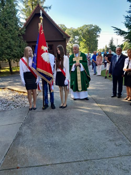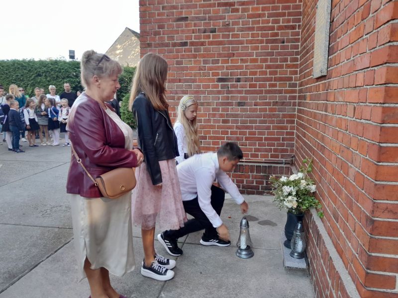 Tego dnia społeczność szkolna zgromadziła się przed kościołem. Samorząd Uczniowski z Panią Dyrektor – Ewą Ostojak oraz przedstawiciele władz gminnych i lokalnych organizacji złożyli kwiaty i zapalili znicze pod tablicą upamiętniającą ofiary II wojny światowej. Po Mszy Świętej, którą odprawił ksiądz kanonik Michał Pacyna, wszyscy udali się do szkoły.