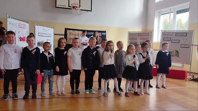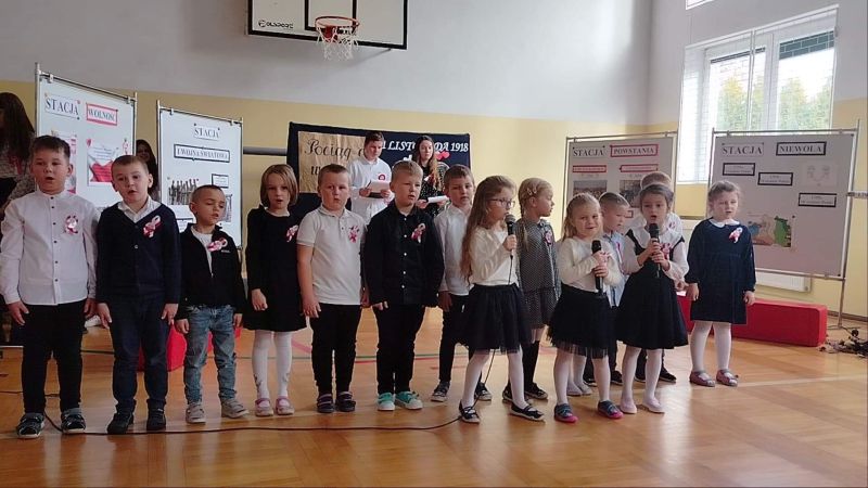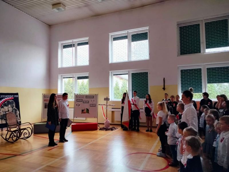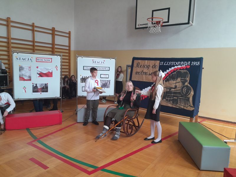 Uroczystość rozpoczęła się odśpiewaniem hymnu państwowego przez całą społeczność szkolną, która tego dnia, strojem podkreśliła wagę obchodów Dnia Niepodległości. Następnie „Pociąg” ruszył do czterech stacji: Niewola, Powstania, I Wojna Światowa oraz Wolność. Na stacjach uczniowie zapoznali się z historią Polski od momentu I rozbioru w 1772 r., aż do odzyskania po 123 latach wolności, w roku 1918. Inscenizacja przeplatana była patriotycznymi wierszami i piosenkami w wykonaniu uczniów. Wzruszającym momentem był występ przedszkolaków, którzy zaśpiewali piosenkę „Co to jest niepodległość?”.