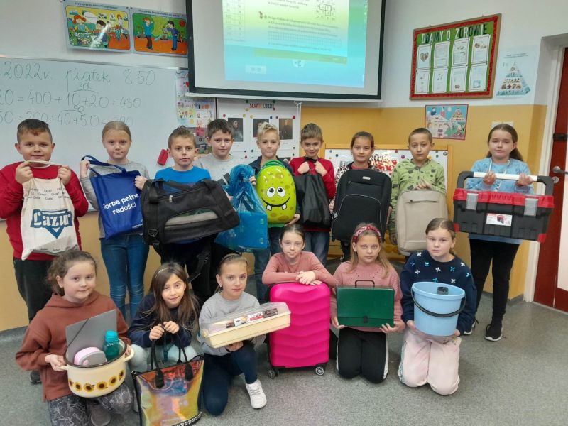 Nauczyciele też nie zawiedli i w tym dniu nie zabrali typowych torebek ani plecaków. Swoje rzeczy przynieśli w wiaderkach, pojemnikach na ciasto, koszykach, czy kartonach. Dzień bez plecaka był okazją do wspólnej zabawy i na pewno będzie długo wspominany przez uczniów.