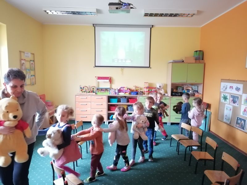 W dniu 25 listopada 2022r przedszkolaki uczestniczyły w obchodach Światowego Dnia Pluszowego Misia. Mimo coraz nowocześniejszych i coraz atrakcyjniejszych zabawek, moda na misie nie przemija. Tego dnia każde dziecko przyszło do przedszkola ze swoim małym lub dużym przyjacielem - misiem. Każdy z nich był piękny i wyjątkowy. Dzieci zostały zaproszone do wspólnej zabawy w misiowej krainie. Poznały historię święta, bawiły się przy piosenkach: ” Pluszowy miś”, „ Jadą, jadą misie”, „ Ja jestem niedźwiadek”. Uczestniczyły w zabawie pt : „Schowaj misia” , wykonały pracę plastyczną, podczas której składały misia z elementów i naklejały na kartkę. Na zakończenie degustowały kolorowe żelowe misie. Ten dzień w przedszkolu pełen był uśmiechu, radości oraz wspólnej zabawy.