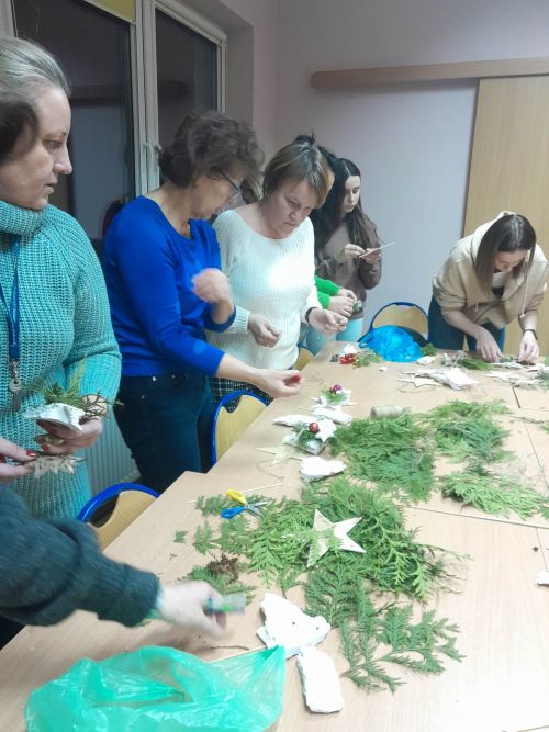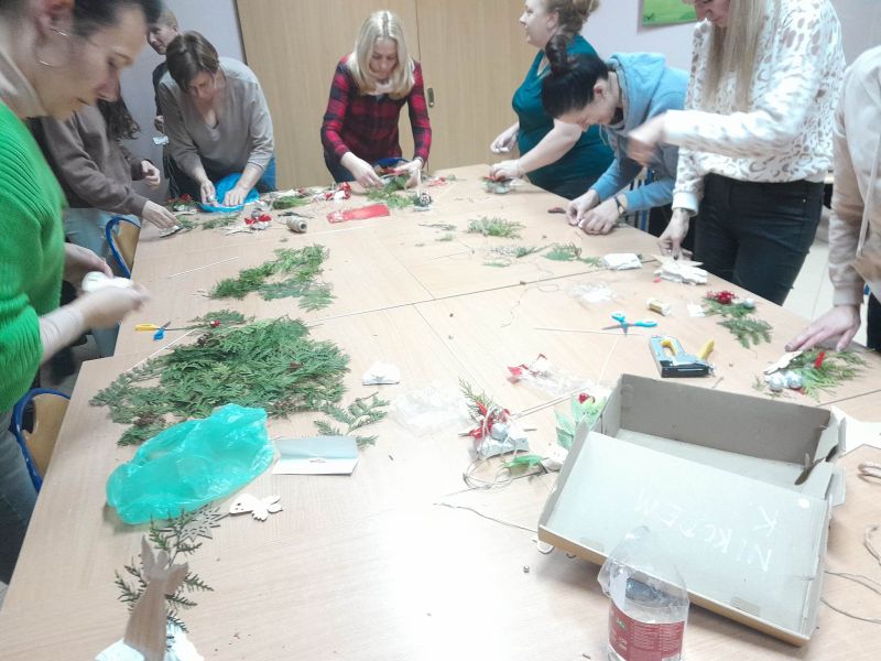 W poniedziałek, 5 grudnia zorganizowaliśmy warsztaty świąteczne dla rodziców i nauczycieli. Uczestnicy wspólnie wykonali piękne, bożonarodzeniowe ozdoby, które będzie można zakupić na kiermaszu podczas corocznego, tradycyjnego spotkania „Święta z kulturą”. Warsztaty te były okazją do spotkania, rozmów, kreatywnego spędzenia czasu i pogłębienia współpracy szkoły z rodzicami.