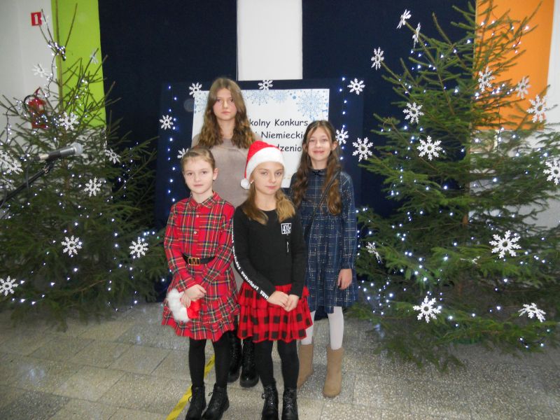 Celem konkursu były: prezentacja umiejętności językowych, wokalnych i artystycznych uczniów, propagowanie nauki języka angielskiego/ niemieckiego przez śpiew oraz kształcenie postaw czynnego uczestnictwa w kulturze. W konkursie uczestniczyli soliści w trzech kategoriach wiekowych, przy czym najliczniej reprezentowana była w tym roku kategoria klas IV - VI. Wykonano tu dwanaście piosenek w języku angielskim, a uczniowie prezentowali naprawdę wysoki poziom językowy i wokalny. Naszą szkołę reprezentowały: Aleksandra Strasburger z kl. II, Nikola Szewczyk z kl. III, Alicja Szydełko z kl. V i Daria Rudowicz z kl. VI. W swej kategorii wiekowej sukcesy odniosły: Nikola Szewczyk ( I miejsce za wykonanie piosenki „Jingle bells”) i Aleksandra Strasburger ( III miejsce z utworem „We wish you a Merry Christmas” ). Laureatki otrzymały dyplomy i nagrody. Miłym akcentem była również wizyta Świętego Mikołaja i upominki dla wszystkich uczestników konkursu.