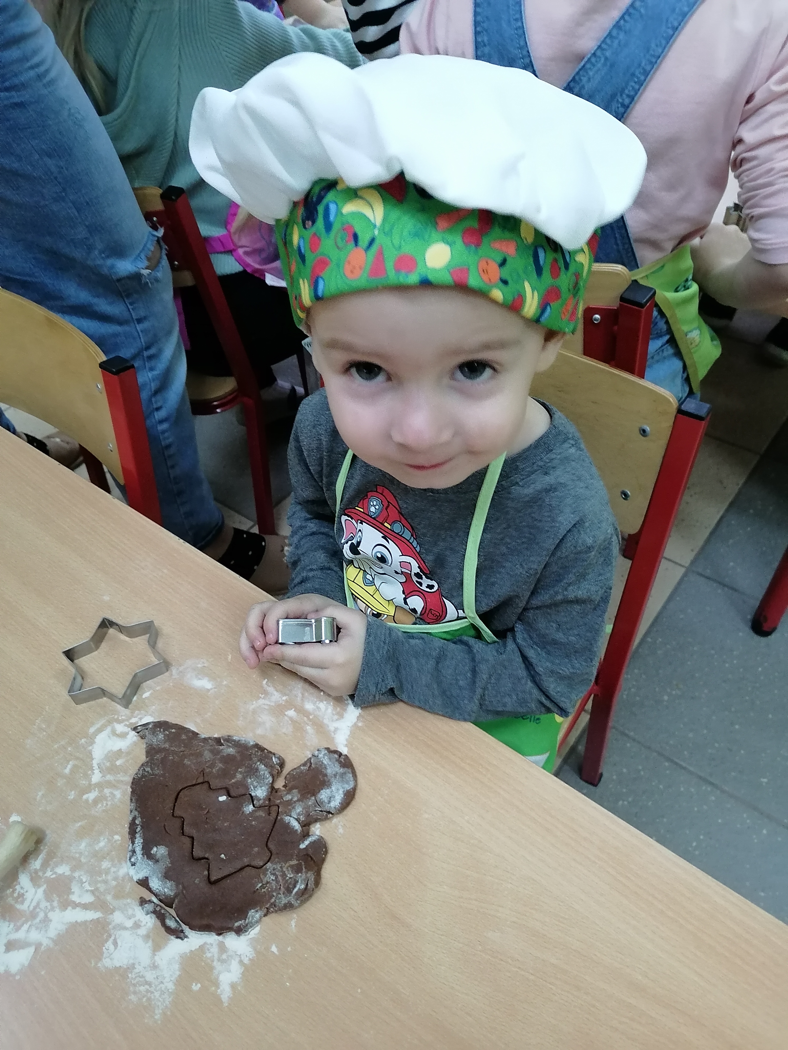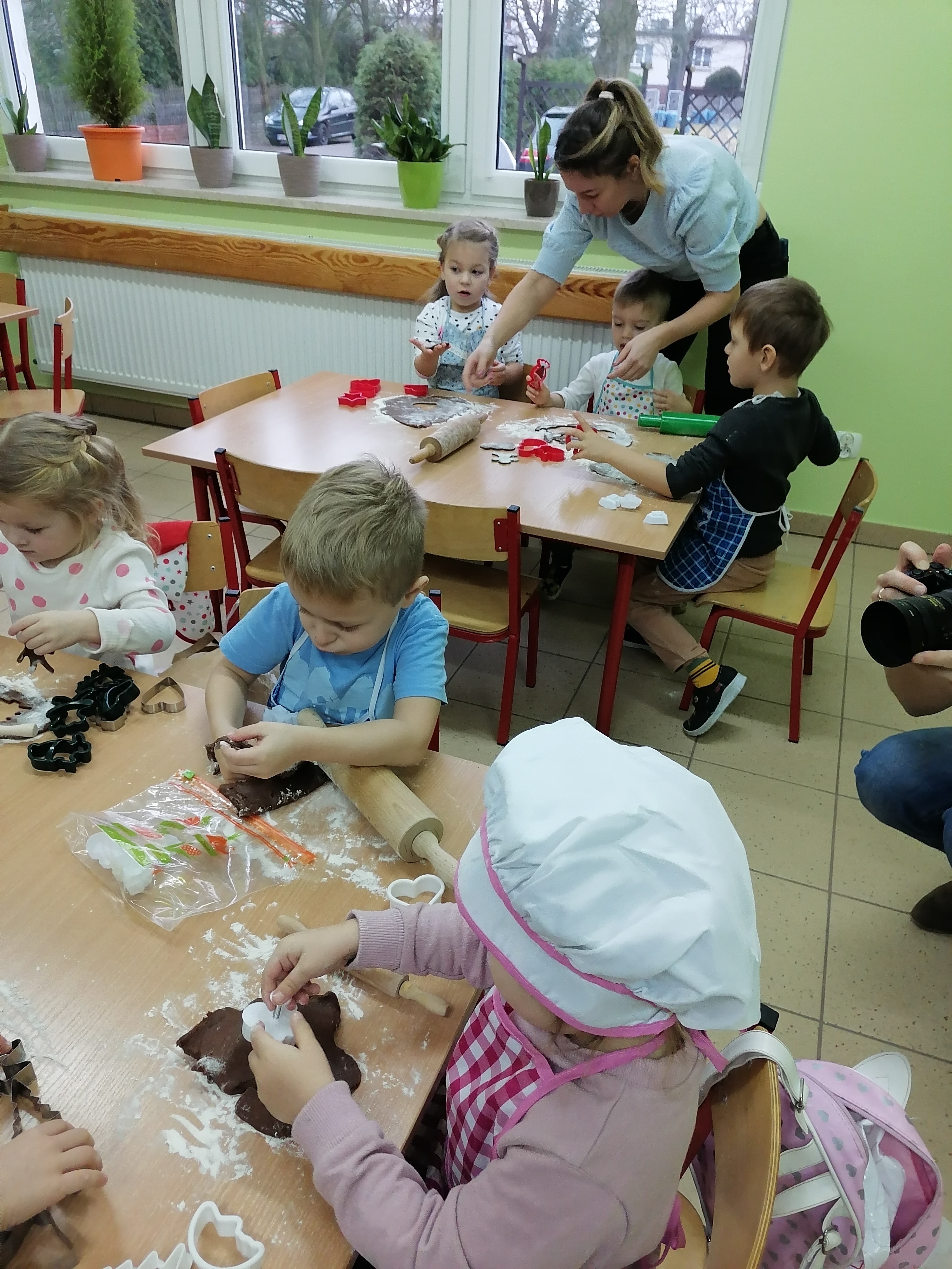 W poniedziałek 5 grudnia rodzice wraz z dziećmi spotkali się na wspólnym pieczeniu pierniczków. Przedszkolaki pod opieką nauczycielek i rodziców zabawili się w prawdziwych cukierników i piekarzy. Wspólne wałkowanie ciasta na pierniki, a następnie wykrawanie różnych kształtów dzięki niezliczonej ilości foremek to dopiero była radość. Pełne blaszki gotowych do upieczenia ciasteczek zostały włożone do pieca , zapach rozprzestrzeniał się po całej szkole i przedszkolu. Zabawa była doskonała, a pierniczki wyszły przepiękne.