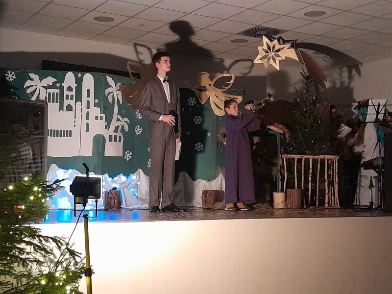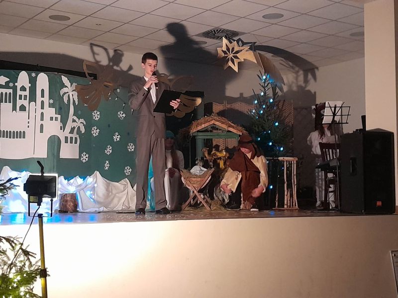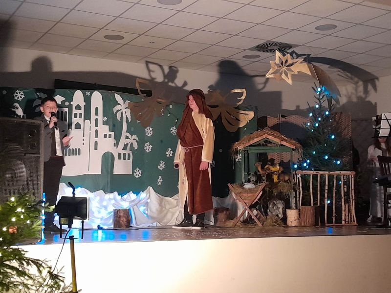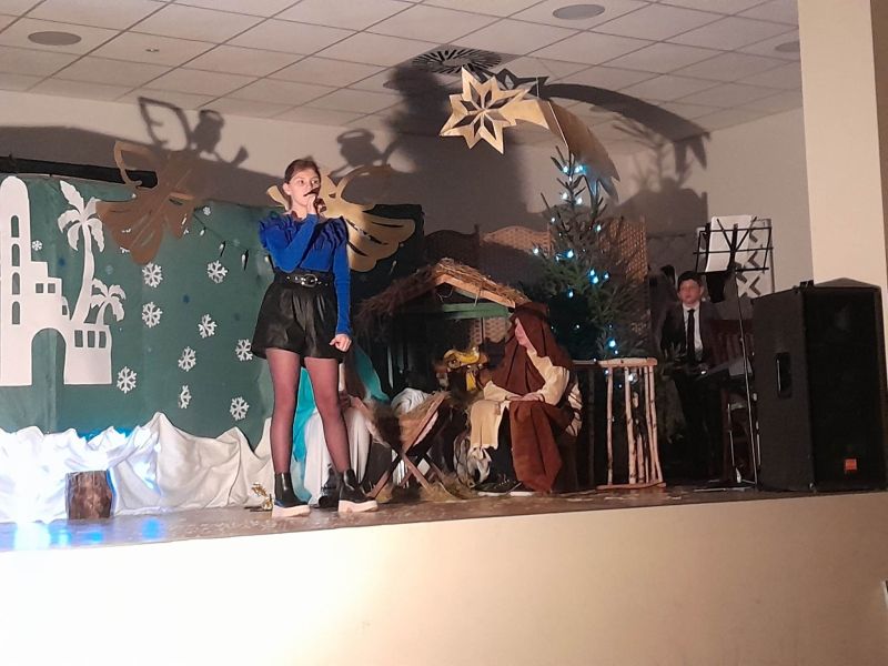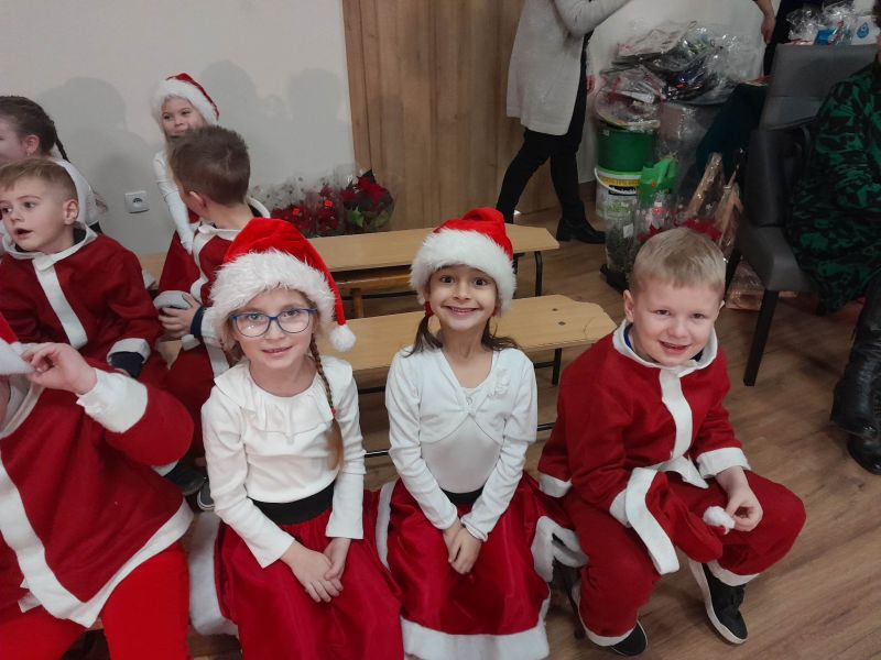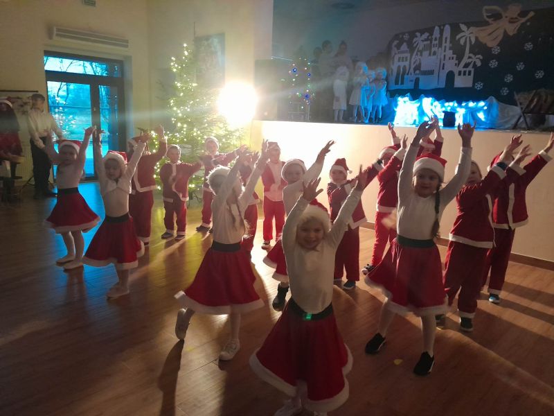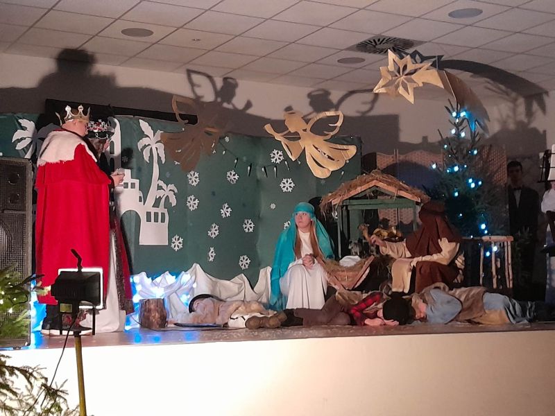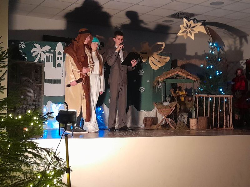 Taniec przedszkolaków z grupy „Starszaków” i piosenka w wykonaniu dzieci z grupy „Maluszków” uświetniły i rozpoczęły występy. Następnie wystawiono jasełka. Szkolni aktorzy świetnie wcielili się w swoje role, przypominając w ten sposób wydarzenia sprzed ponad dwóch tysięcy lat, kiedy to w Betlejem narodziło się Boże Dzieciątko. Uczniowie odgrywali role Maryi i Józefa, pasterzy, aniołów, trzech króli i dzieci. Przybyli oni, by złożyć pokłon Jezusowi narodzonemu w ubogiej stajence.