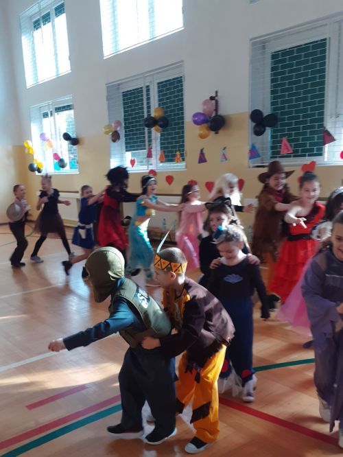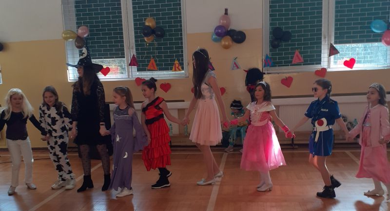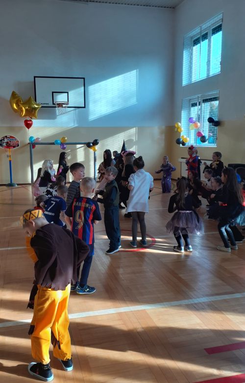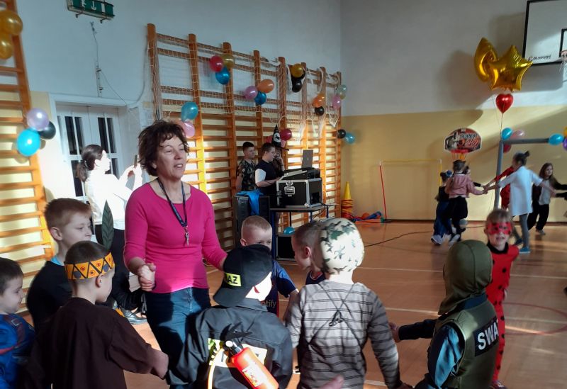 Bal karnawałowy jest atrakcją bardzo lubianą również przez dzieci, dostarcza im wielu przeżyć i radości. Tak też było u nas, w dniu 16 lutego 2023 roku. Na pięknie udekorowanej sali sportowej pojawiły się kolorowe postaci. Dzieci przebrane były za bohaterów znanych bajek, można było zobaczyć: wróżki, królewny, biedronki, księżniczki, rycerzy, piratów, policjantów, żołnierzy, Żówie Ninja, Batmany, …nie sposób zliczyć i wymienić tych wszystkich postaci. Na sali podczas pląsów było bardzo kolorowo, wszyscy bawili się wesoło, uśmiech nie znikał z twarzy mimo chwilowego zmęczenia. Dodatkową atrakcją były konkursy i zabawy, przygotowane przez starsze koleżanki, które dostarczyły mnóstwo radości. Zabawę uprzyjemniły pyszne pączki, które szybko znikały z talerzy. Kiedy czas zabawy dobiegł końca dzieci z żalem opuszczały salę. Bal umożliwił dzieciom i wychowawcom spędzenie czasu w miłej atmosferze. Wspólna zabawa przyniosła wiele radości naszym wychowankom, a to było głównym celem tego balu.