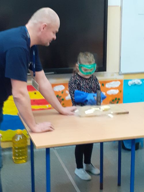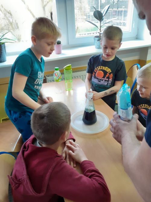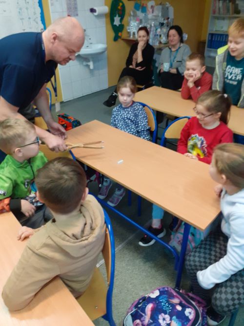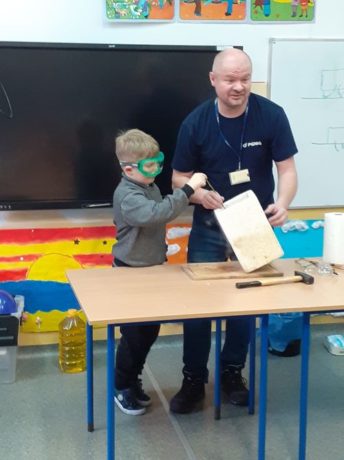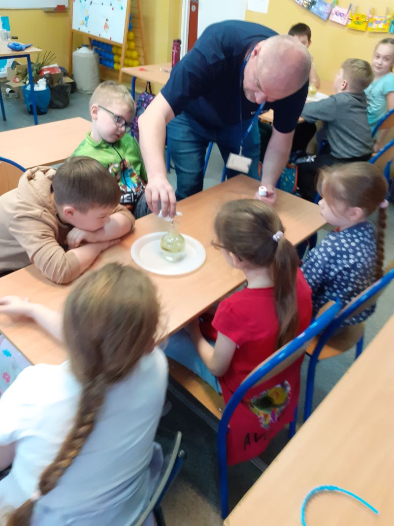 Warsztaty poprowadził Pan Mariusz, który przygotował efektowny pokaz naukowy, wsparty solidną dawką wiedzy. Uczniowie mieli możliwość samodzielnie przeprowadzić eksperymenty. Oczywiście pod ścisłym nadzorem pana Mariusza z zachowaniem wszelkich zasad bezpieczeństwa. Wszyscy uczniowie byli bardzo zachwyceni.