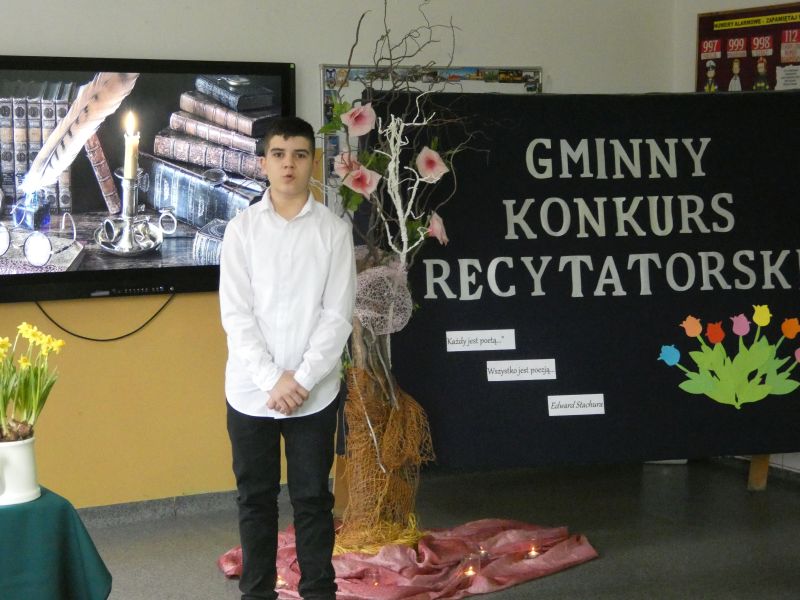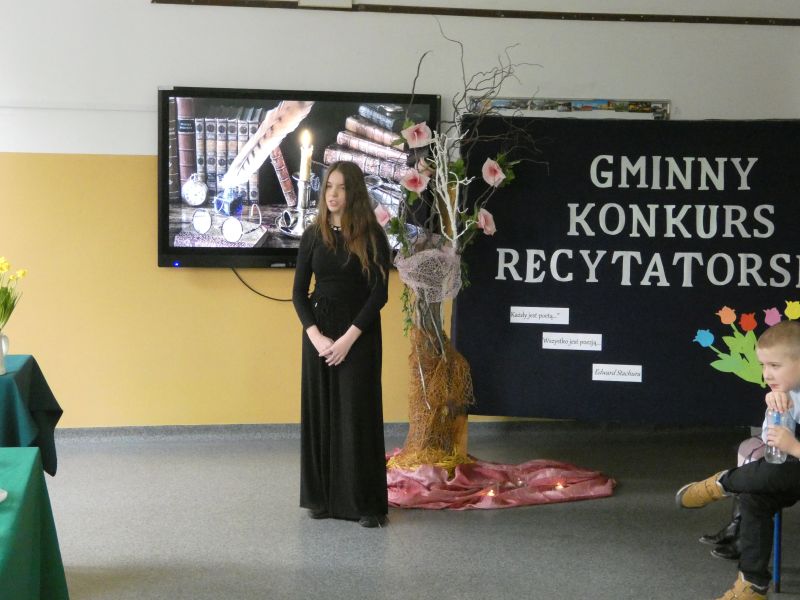 15 marca br. odbył się w naszej szkole Gminny Konkurs Recytatorski. Uczestniczyło w nim 24 uczniów, którzy jako zwycięzcy etapów szkolnych, reprezentowali swoje placówki.