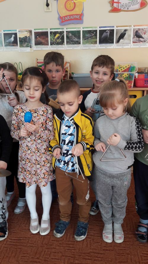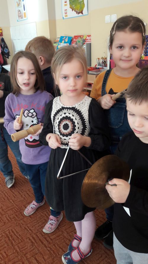 Przedszkolaki dowiedziały się, jak można rozwijać talent i zainteresowania muzyczne, ile pracy i czasu trzeba poświęcić, by móc grać. Wspaniałym przeżyciem dla najmłodszych, było wysłuchanie krótkich utworów zaprezentowanych przez gości oraz wspólne śpiewanie znanych piosenek. Bardzo dziękujemy młodym muzykom za przyjęcie zaproszenia i chęć podzielenia się swoją pasją, wiedzą i talentem. Być może spotkanie to zainspiruje któregoś z przedszkolaków i zachęci do rozwijania zdolności muzycznych. Muzyka uspokaja, uczy wrażliwości, rozwija zainteresowania i pozwala odkryć nowe umiejętności. Muzykoterapia w przedszkolu wskazana jest w pracy z dziećmi nadpobudliwymi, zalęknionymi, mającymi trudności z nauką pisania i czytania, a także z niską koordynacją ruchową.