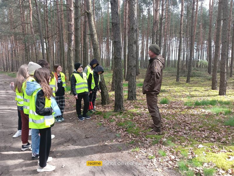 Celem wycieczki było wzbogacenie wiedzy na temat gatunków drzew i zwierząt występujących w naszych lasach oraz poznanie pracy leśniczego. Pan leśniczy Stanisław Gdula, pracownik Nadleśnictwa Antonin, w bezpośrednim kontakcie z przyrodą omówił jakie zwierzęta oraz roślinność występują w naszej okolicy. Wskazał jak ważna jest w jego pracy pasja oraz radość z obcowania z przyrodą. Przedstawił wiele ciekawostek dotyczących leśnych zwierząt, ich żywienia i miejsc żerowania, wspomniał też o dokarmianiu zwierząt zimą. W czasie spotkania pan Stanisław udzielił wyczerpujących odpowiedzi na wszystkie pytania uczniów. Wycieczka do lasu nie tylko wzbogaciła wiedzę piątoklasistów, ale miała też walory zdrowotne. Uczniowie, spacerując po lesie, miło spędzili czas na świeżym powietrzu, a możliwość bezpośredniego kontaktu z przyrodą utrwaliła ich wiedzę i dostarczyła wiele radości.