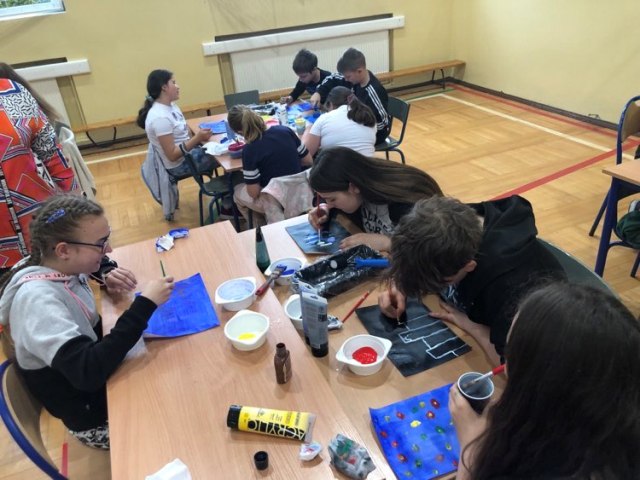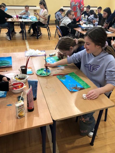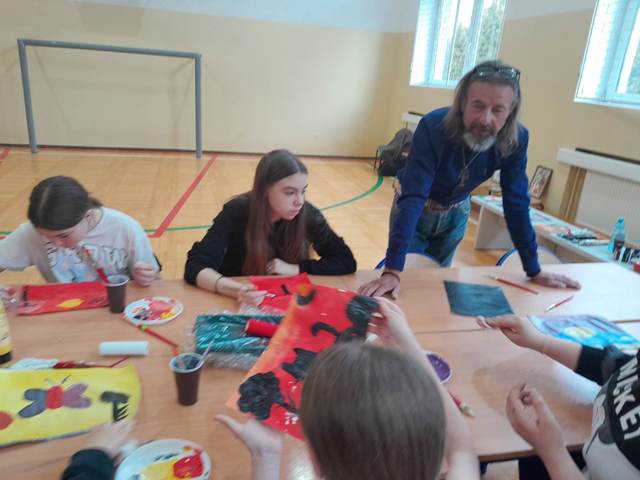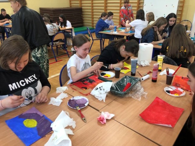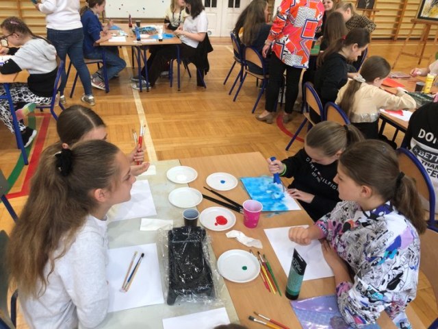 W poniedziałek, 15 maja uczniowie klas 4-8 mieli okazję uczestniczyć w warsztatach malarskich prowadzonych przez pana Roberta Fochlera.
