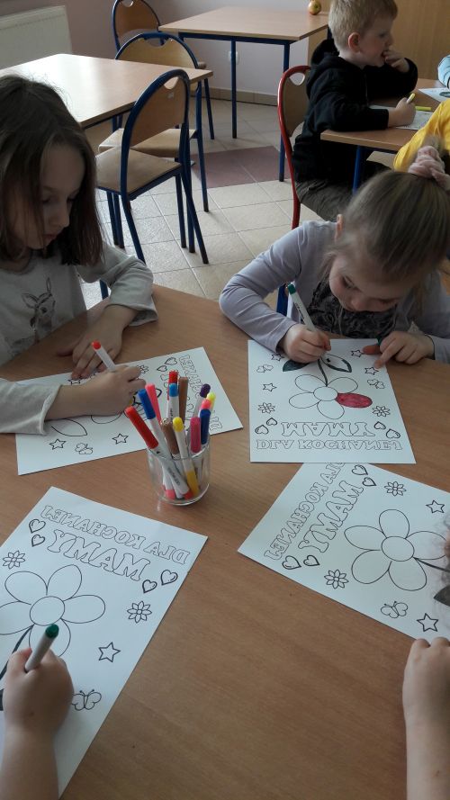 Dnia 10 maja 2023r. dzieci przedszkolne oraz chętni uczniowie klasy pierwszej i drugiej uczestniczyli w warsztatach plastycznych zorganizowanych z okazji Dnia mamy przez Gminę Sośnie.