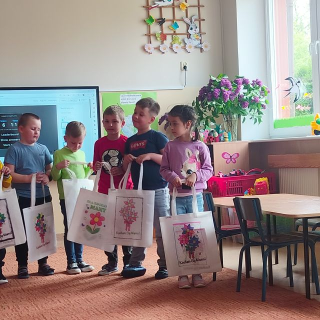 Celem spotkania było pokazanie dorosłym , w jaki sposób nauczyciel wychowania przedszkolnego pracuje z dziećmi, jak w gronie rówieśników zachowują się poszczególni wychowankowie. Ponadto, Rodzice obserwując zajęcie, mogli się przekonać, czy ich dzieci wypowiadają się, liczą, czytają ze zrozumieniem, rysują szlaczki, współpracują w zespole, rozwiązują testy .Na zakończenie spotkania, w związku ze zbliżającym się Dniem Matki, starszaki zaśpiewały Mamom okolicznościową piosenkę oraz wręczyły przygotowane w ramach warsztatów torby- upominki.