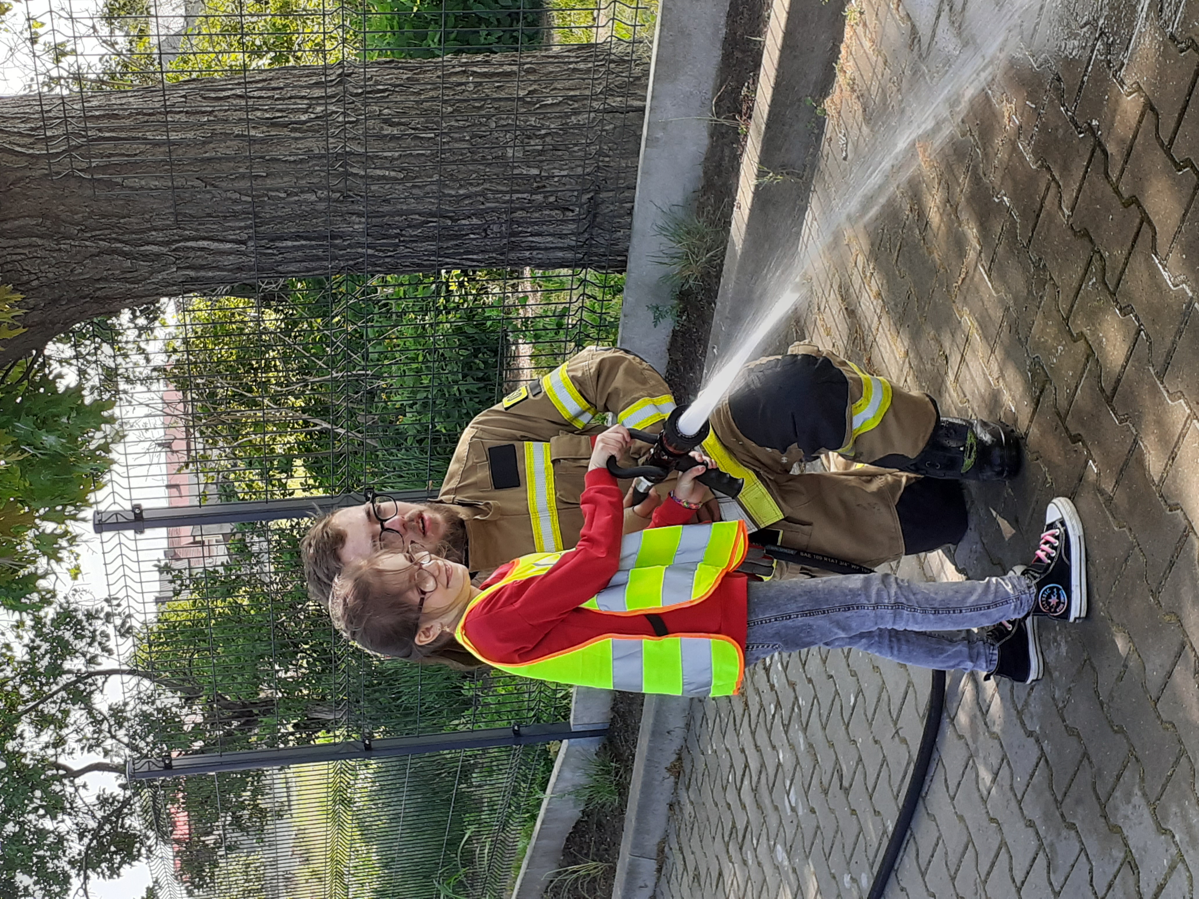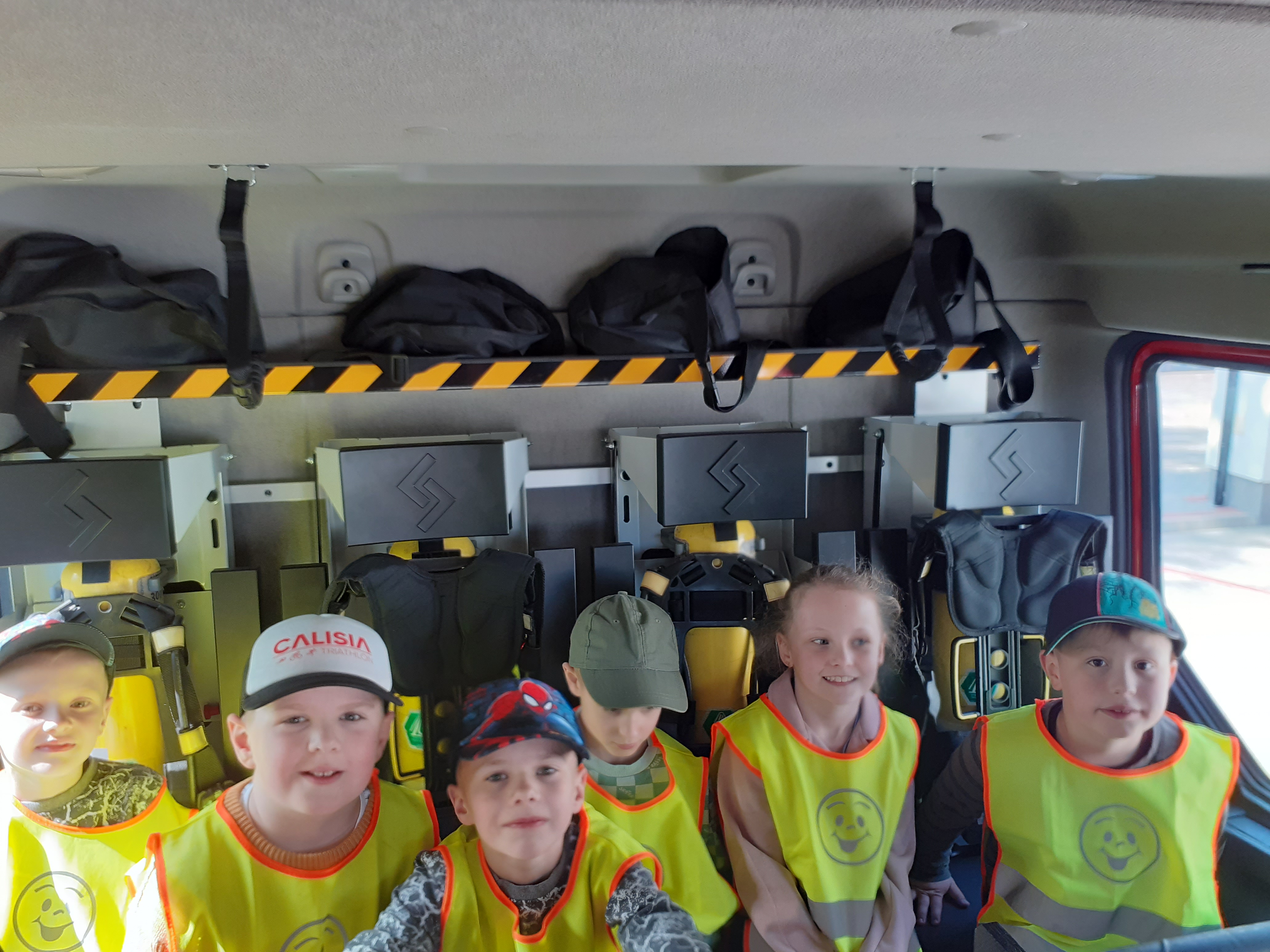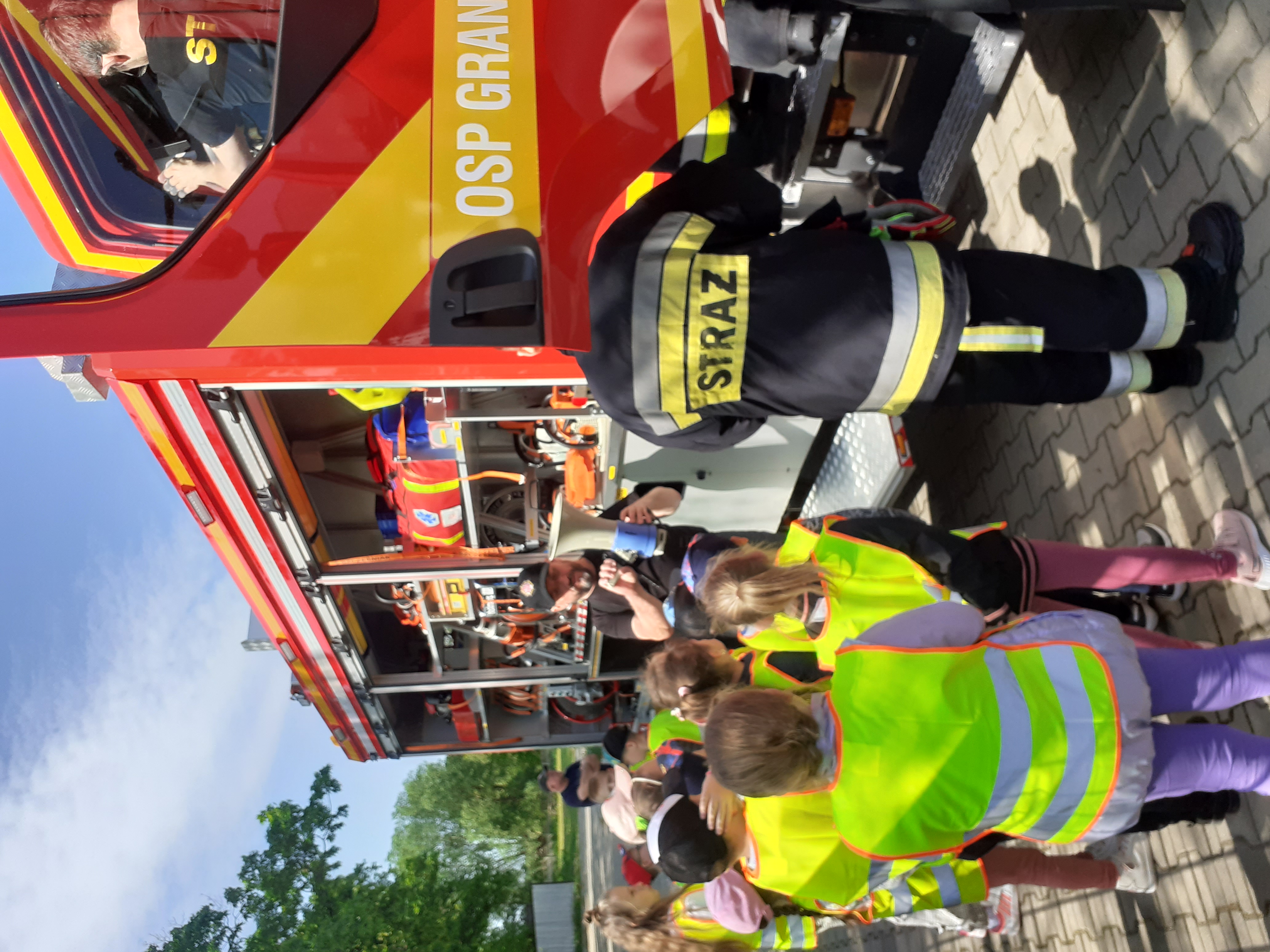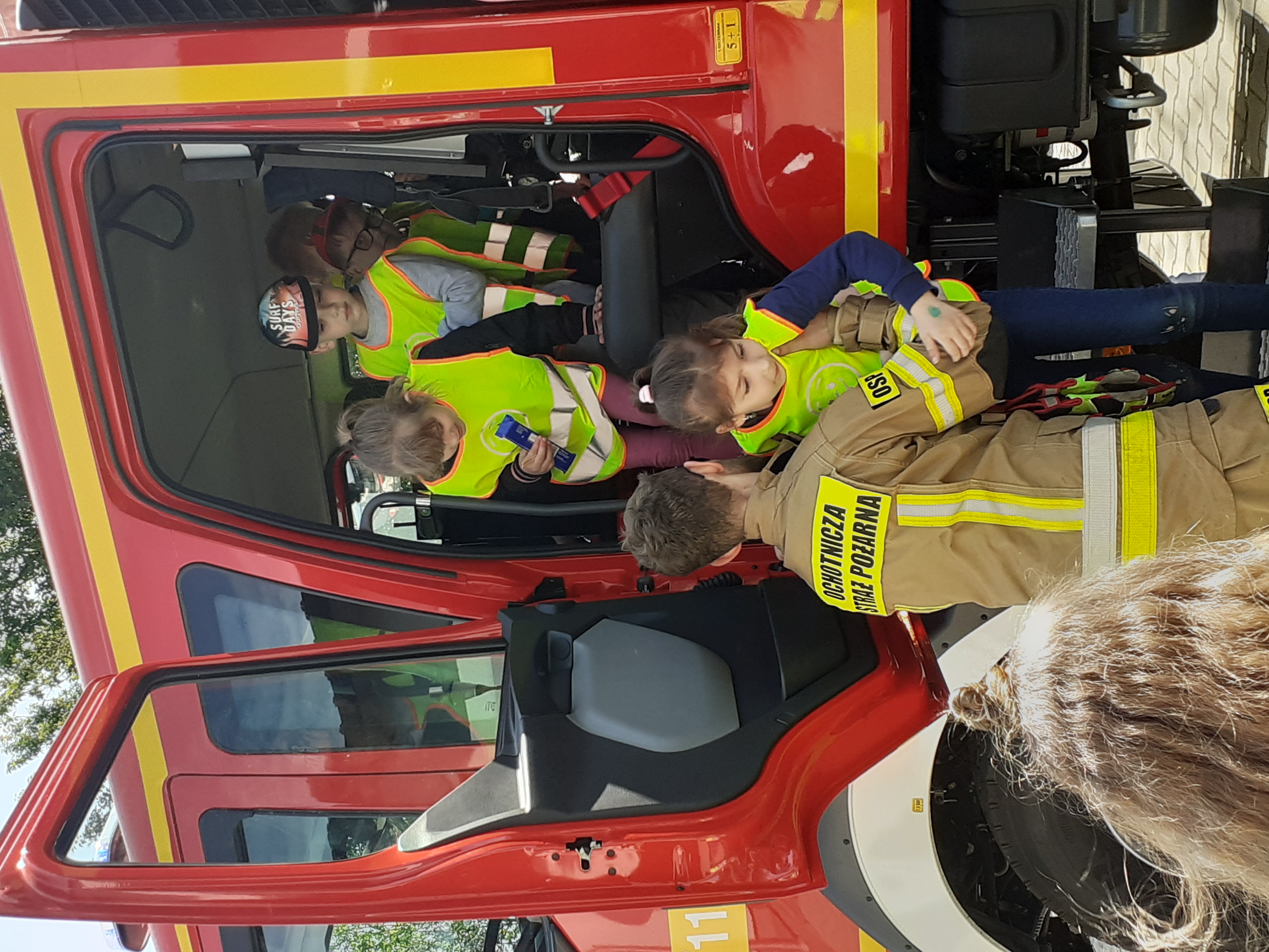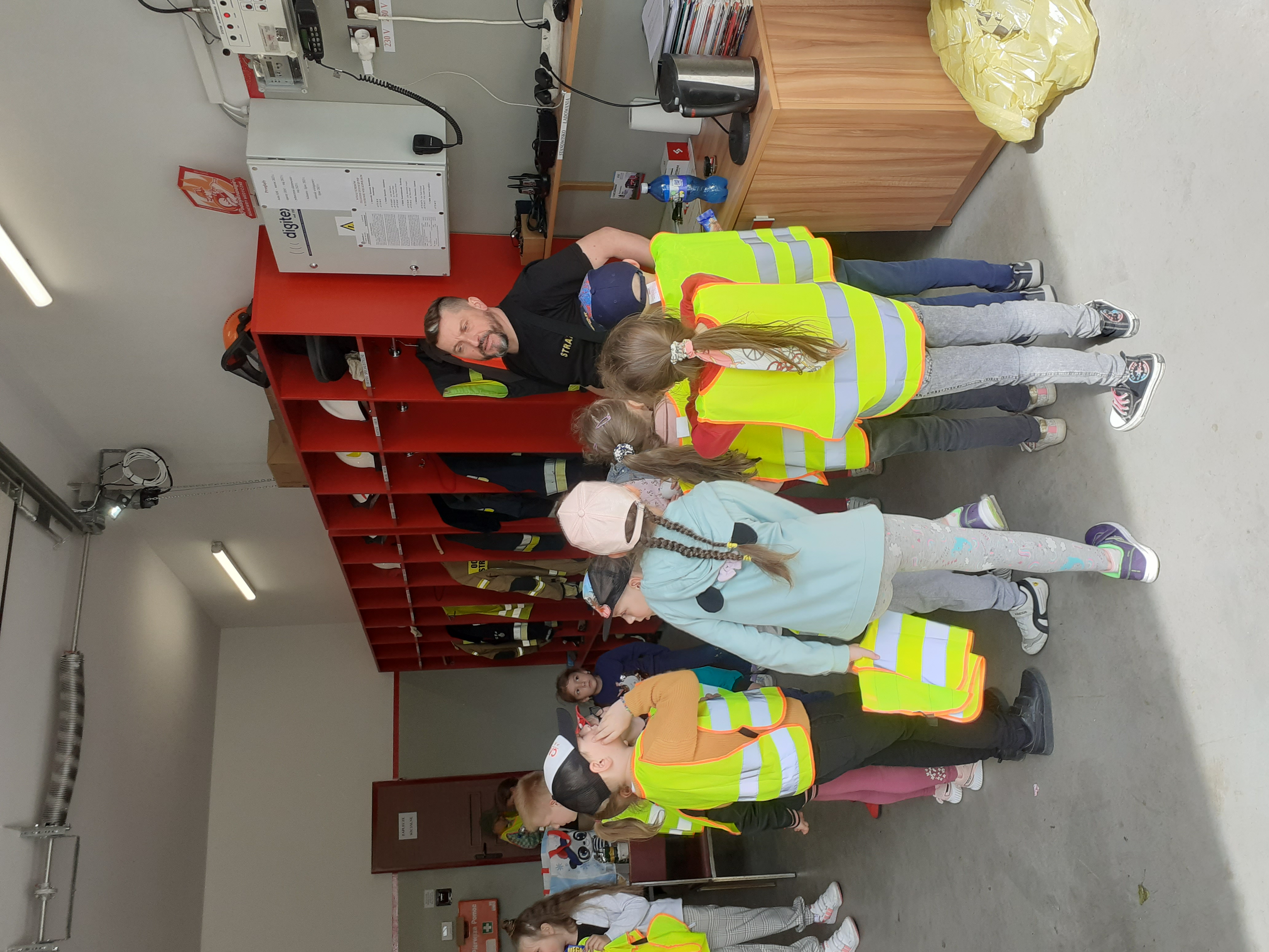 Dzieci dowiedziały się, że strażacy nie tylko gaszą pożary, ale również są wzywani do wypadków samochodowych, do zalanych domów, powalonych drzew, a także ratują zwierzęta. Podczas spotkania strażacy uświadomili dzieciom jak zachowywać się w sytuacjach zagrożenia, oraz jak powiadomić służby ratownicze i udzielać pierwszej pomocy. Wielką radość sprawiło uczniom obejrzenie z bliska wozu strażackiego oraz zapoznania się z jego wyposażeniem. Wszystkie dzieci mogły wypróbować swoich sił i zmierzyć się z prawdziwym wężem strażackim. Wychowankowie zwiedzili również remizę strażacką. Jednak największą atrakcją dla nich była przejażdżka wozem strażackim.