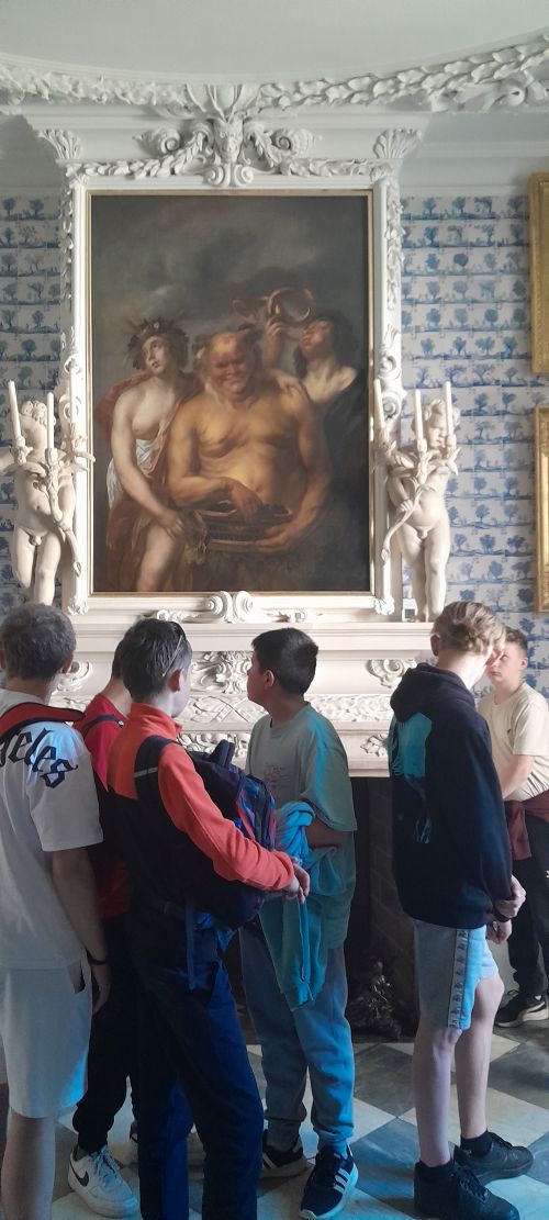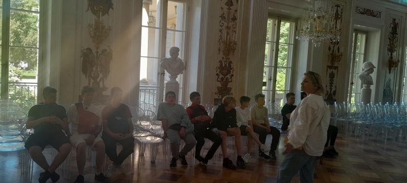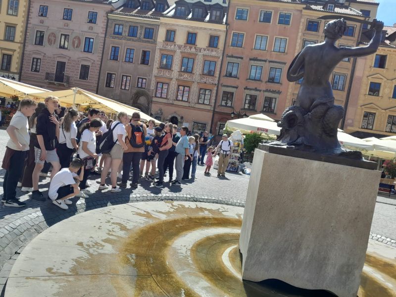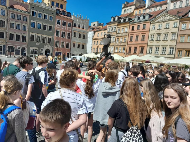 Pierwszym punktem wycieczki szkolnej było zwiedzanie Muzeum Łazienek Królewskich, czyli letniej Rezydencji Króla Stanisława Augusta Poniatowskiego. Barokowy obiekt wraz z przyległym do niego parkiem powstał w XVIII wieku. Mogliśmy tutaj podziwiać wnętrza i ekspozycje muzealne, a także poznać historię zamku. Zachwyciły nas przede wszystkim bogate i pełne przepychu Apartamenty Królewskie, a także interesująca kolekcja sztuki mieszcząca się w Galerii Arcydzieł. Dalszym etapem naszej wycieczki było zwiedzanie warszawskiej Starówki z pięknymi, kolorowymi, zabytkowymi kamienicami. Najbardziej urzekający był widok Rynku Starego Miasta, na którym znajduje się Pomnik Syrenki. Dodatkowej magii temu miejscu nadawał kataryniarz, który wygrywaną muzyką przeniósł nas do Warszawy z dawnych lat. Tam uczniowie mieli chwilę na zakup drobnych pamiątek. Następnie autokarem udaliśmy się na ulicę Złotą w Warszawie, gdzie znajduje się autentyczny fragment Muru Getta Warszawskiego. Umieszczona jest na nim tablica z napisem: „ W okresie 15 XI 1940 r. – 20 XI 1941 r. mur ten był granicą getta”. Zachowany fragment, to obszar tzw. Dużego getta, czyli pierwotnego obszaru dzielnicy żydowskiej w latach 1940-1941. Dwie brakujące cegły zostały podarowane Muzeum Holocaustu w Waszyngtonie, gdzie wykonano również replikę fragmentu muru. Istniejący największy fragment muru Getta Warszawskiego jest ważnym elementem wpływającym na kształtowanie świadomości narodowej. Stanowi bowiem jedyny zachowany w tak dużej części ślad męczeństwa i walki Żydów z okresu II wojny światowej.
