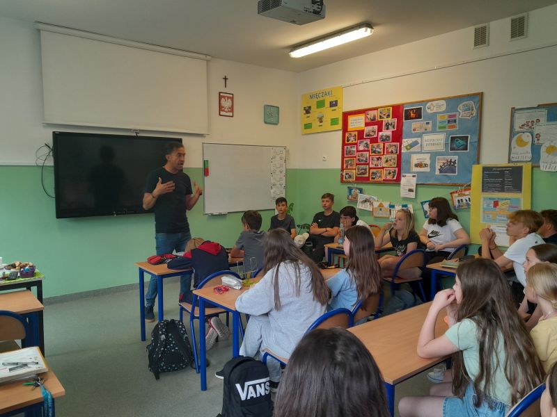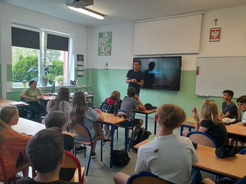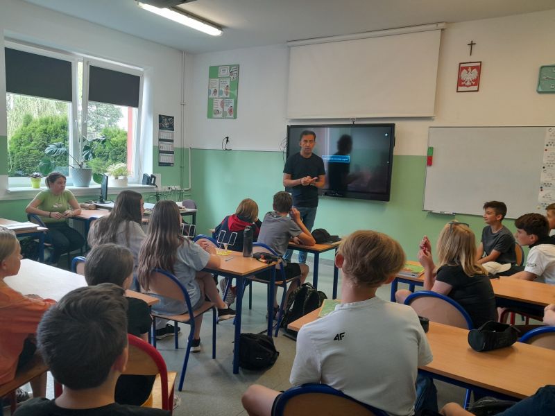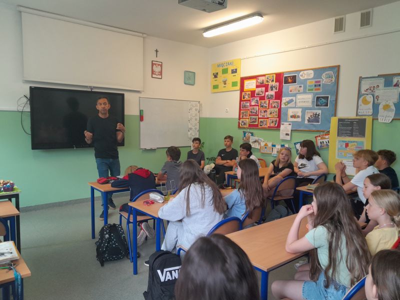 W dn. 12 czerwca naszą szkołę odwiedzili lektorzy szkoły językowej Leaderschool z Ostrowa Wielkopolskiego. Pani Zuzanna Stachurska przeprowadziła zajęcia w kl. I – IV, a pan Martin Plascencia w kl. V – VIII.