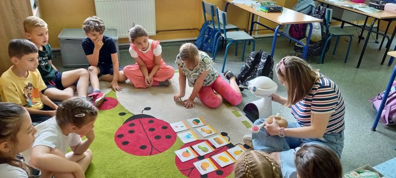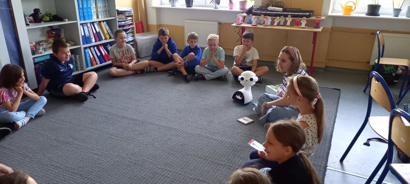 Celem zajęć było pokazanie innych metod nauczania języka angielskiego. Jedną z nich była „Leo English”, czyli wielozmysłowa metoda nauczania j. angielskiego dla dzieci. Przy pomocy robota EMYS lektorka przeprowadziła różne gry językowe, które aktywizowały wszystkich uczniów i pokazały, że języka można uczyć się również poprzez zabawę. Uczniowie starszych klas dowiedzieli się, że nauka języków nie tylko pozwala odnieść sukces na polu zawodowym, ale także pomaga zrozumieć, jak ludzie z innych kultur myślą, widzą życie i świat. Obydwoje lektorzy starali się pokazać, że posługiwanie się językiem angielskim jest w dzisiejszych czasach niezmiernie ważną umiejętnością. Za to im dziękujemy i liczymy na dalszą współpracę.