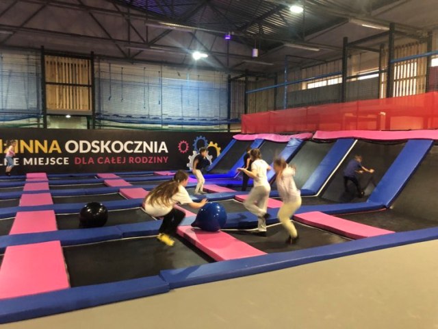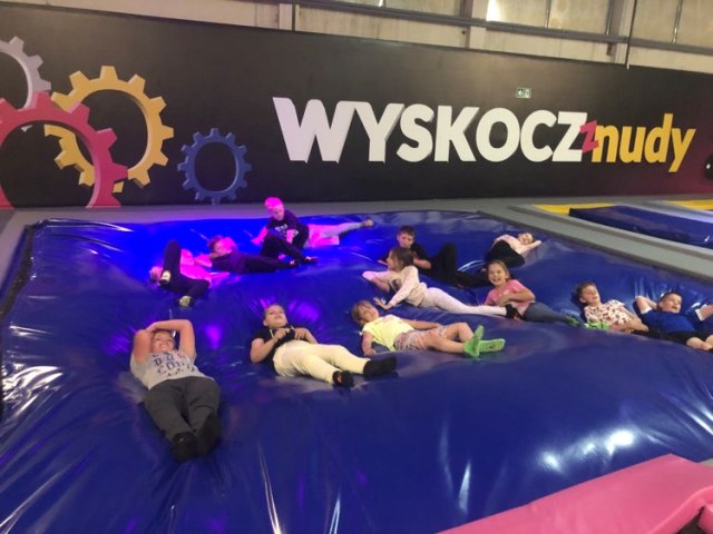 Po zapoznaniu się z regulaminem parku i rozgrzewce pod okiem instruktora, uczestnicy korzystali z szeregu atrakcji, m.in. strefy trampolin, strefy malucha, poduszek powietrznych, parku linowego i zjazdów pontonowych. Skacząc na trampolinach dzieci rozwijały ogólną sprawność fizyczną, koordynację oraz kształtowały właściwą postawę ciała. Wspólny pobyt w parku rozrywki pozwolił im aktywnie spędzić czas, wprawił ich w znakomity nastrój i wyzwolił mnóstwo pozytywnej energii.