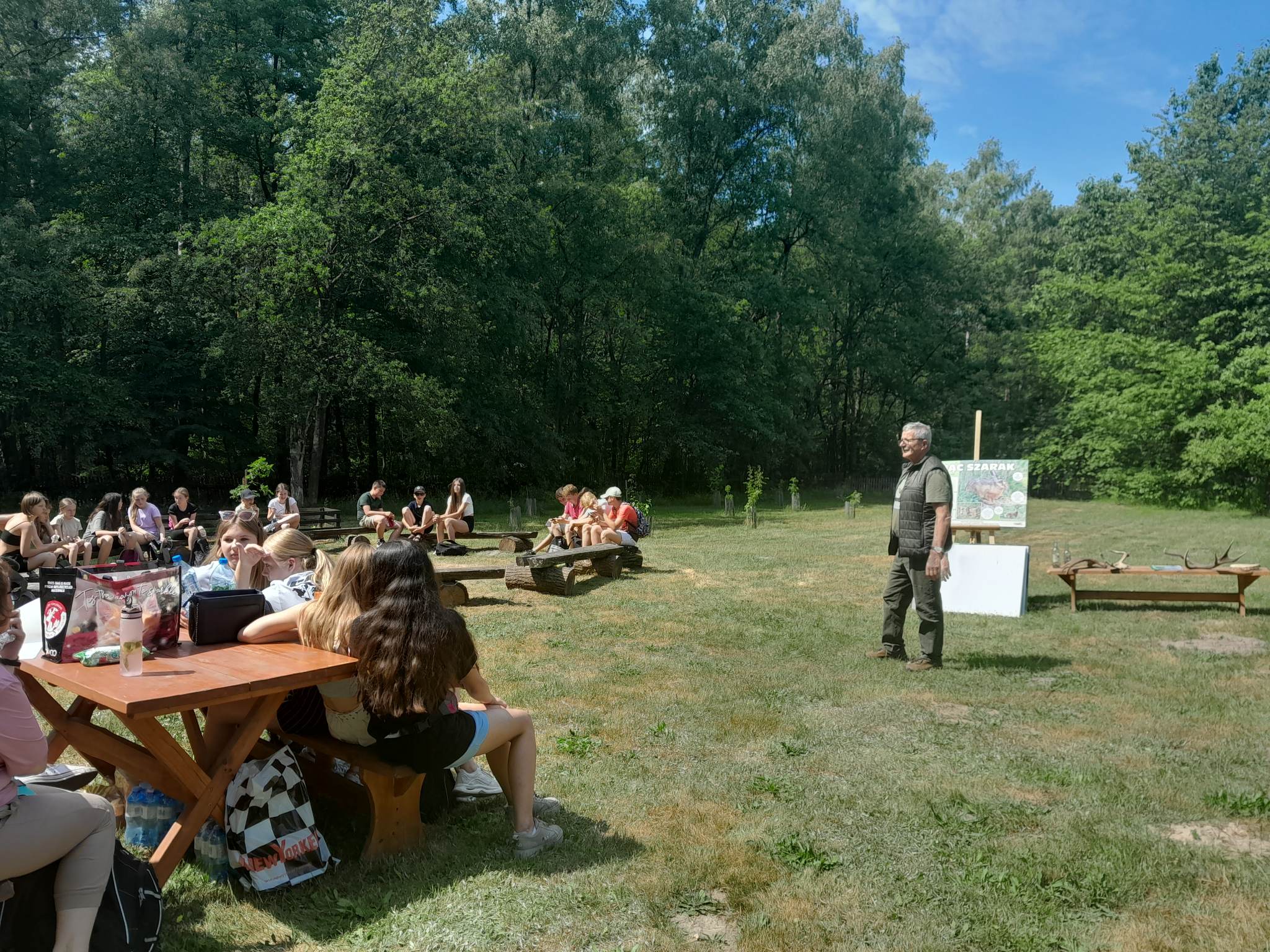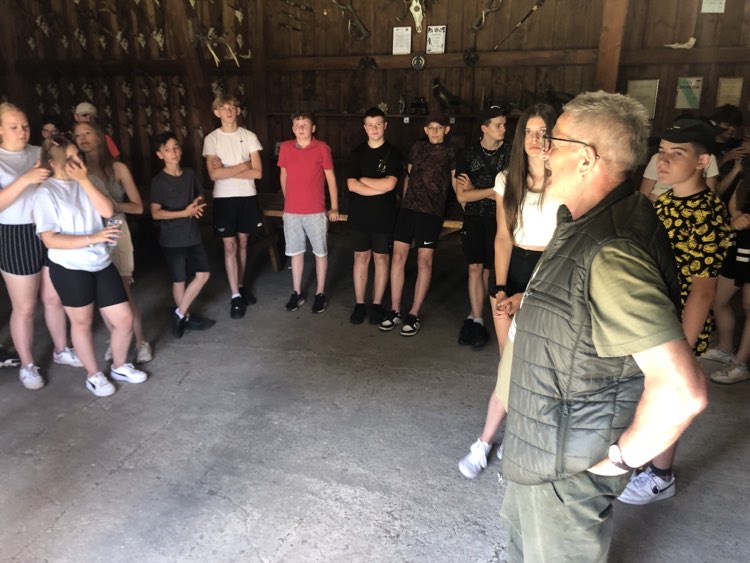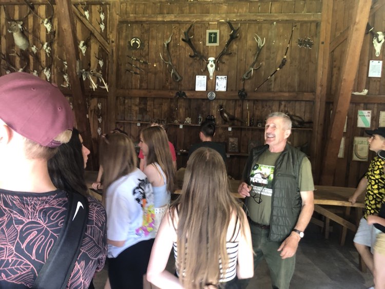 Pan leśniczy – Bronisław Krawiec oprowadził uczniów po leśniczówce i w bardzo przystępny sposób opowiedział uczniom różne ciekawostki na temat lasu i jego mieszkańców. Młodzież miała również okazję podziwiać stodołę, w której mieszczą się różne trofea Pana Bronisława, m.in. poroża różnych zwierząt.