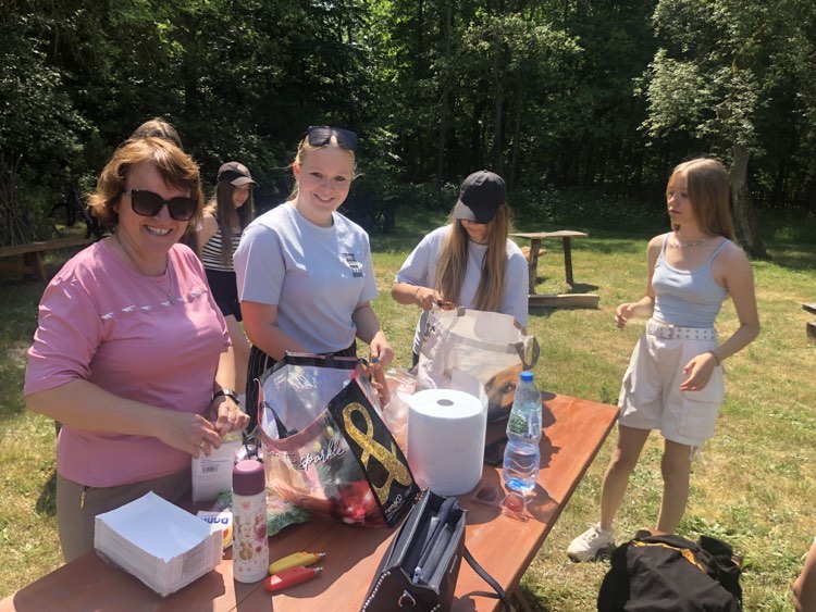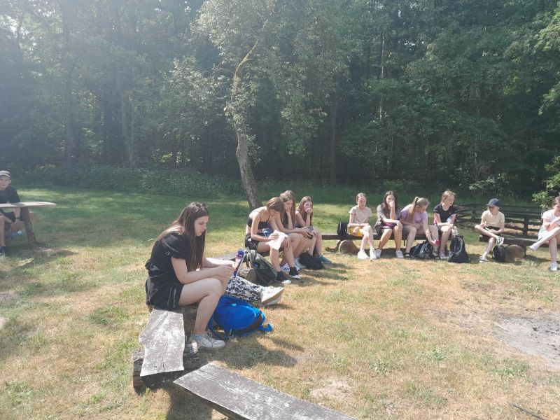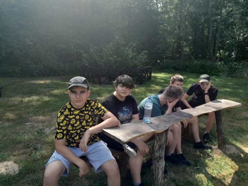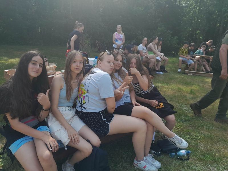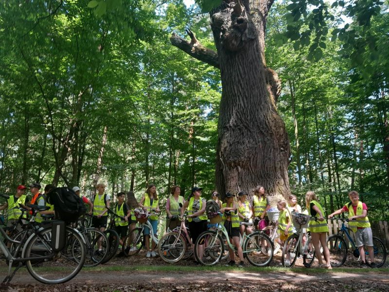 Dużą atrakcją było również ognisko, na którym piekli wszyscy kiełbaski. Ostatnim punktem wycieczki był pomnik przyrody ożywionej - Dąb „Jan”, który ma już ponad 400 lat. Jak głosi legenda, w cieniu tego dębu odpoczywał kiedyś król Jan III Sobieski.